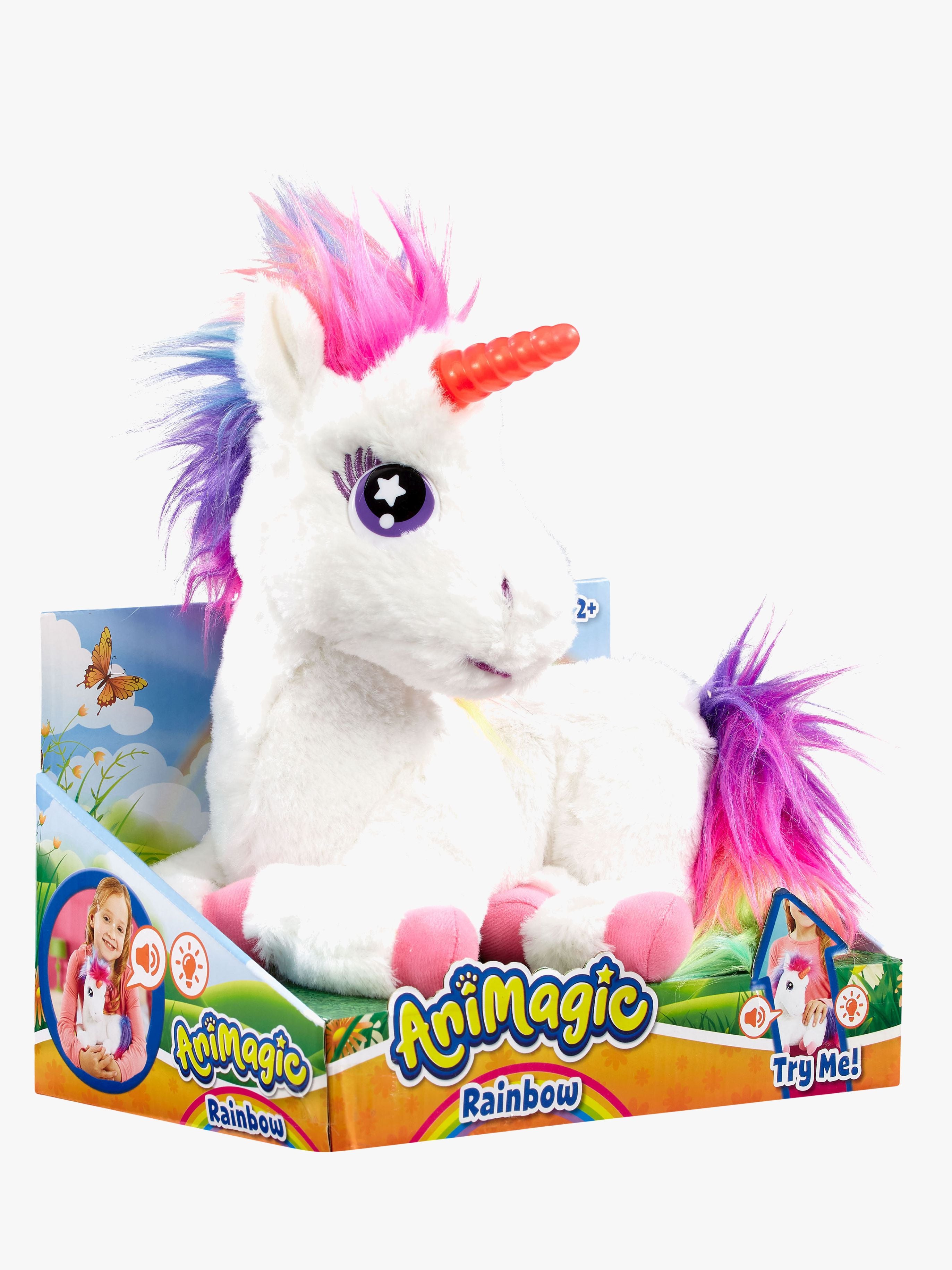 Glowing Unicorn interaktivt legetųj fra Animagic. Perfekt til leg, hvor det kun er fantasien, der sętter gręnser. - Indeholder: 1 enhjųrning. - Regnbuefarvet, skinnende man. - Lyd- og lyseffekter. - Blųdt design. - CE-męrket. - Anbefalet alder: Fra 3 år. - Batterier medfųlger.