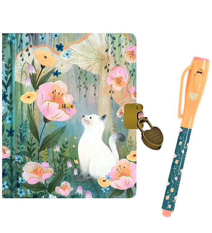 Djeco Dagbog m. Lås & Magisk Pen - Kendra Binney - Kat/Blomst