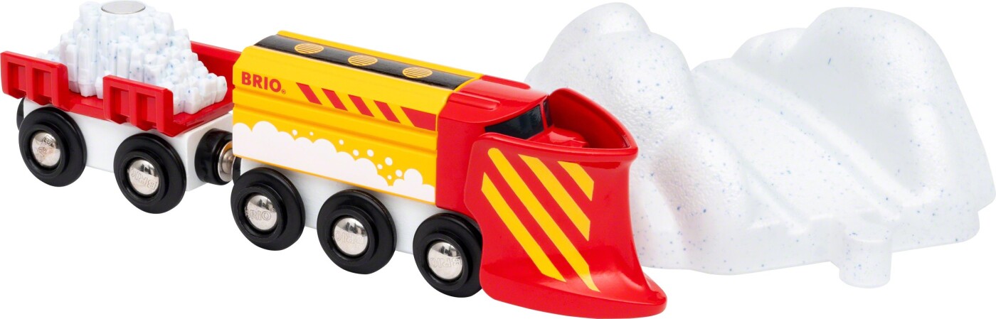 Toget med sneplov fra BRIO sikrer, at sne aldrig bliver et problem på togbanen igen! Toget fjerner...