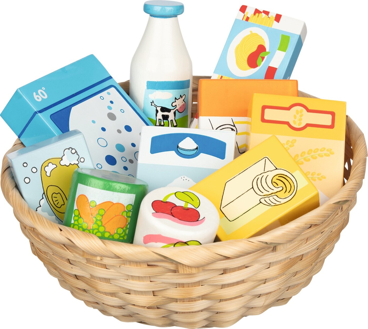 Goki - Legetøjsbutik Miniaturer I En Kurv, Mad Og Husholdningsartikler