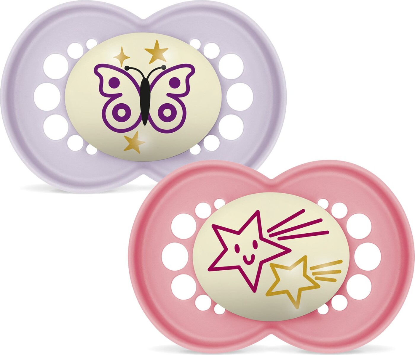 MAM Original Night Sut til babyer fra 6 til 16 måneder kommer i en blid lyserød silikone. Suttens...