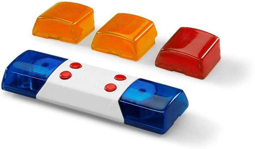 Nu kan du sætte lys og lyd på din travle BRUDER-verden af entreprenørmaskiner og køretøjer. Tilbehørssættet indeholder blinkende lygter med klæbende overflade, så du nemt kan sætte dem på dine køretøjer, og 3 signallamper (2 orange og 1 rød). Tryk på knap