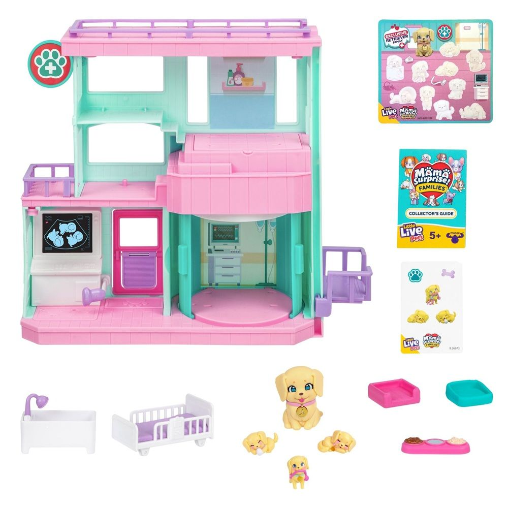 Little Live Pets Mama Surprise Babypleje-klinik Oplev den ultimative Mama Surprise-oplevelse med et fantastisk hospitalslegestel, hvor du kan afsløre og tage dig af din mor og hendes hvalpe! Dette legesæt kommer med en eksklusiv familie af retrievere! Fi