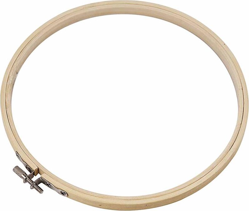 Run broderiramme i træ med spænde af metal, som holder stoffet helt på plads, mens du broderer...