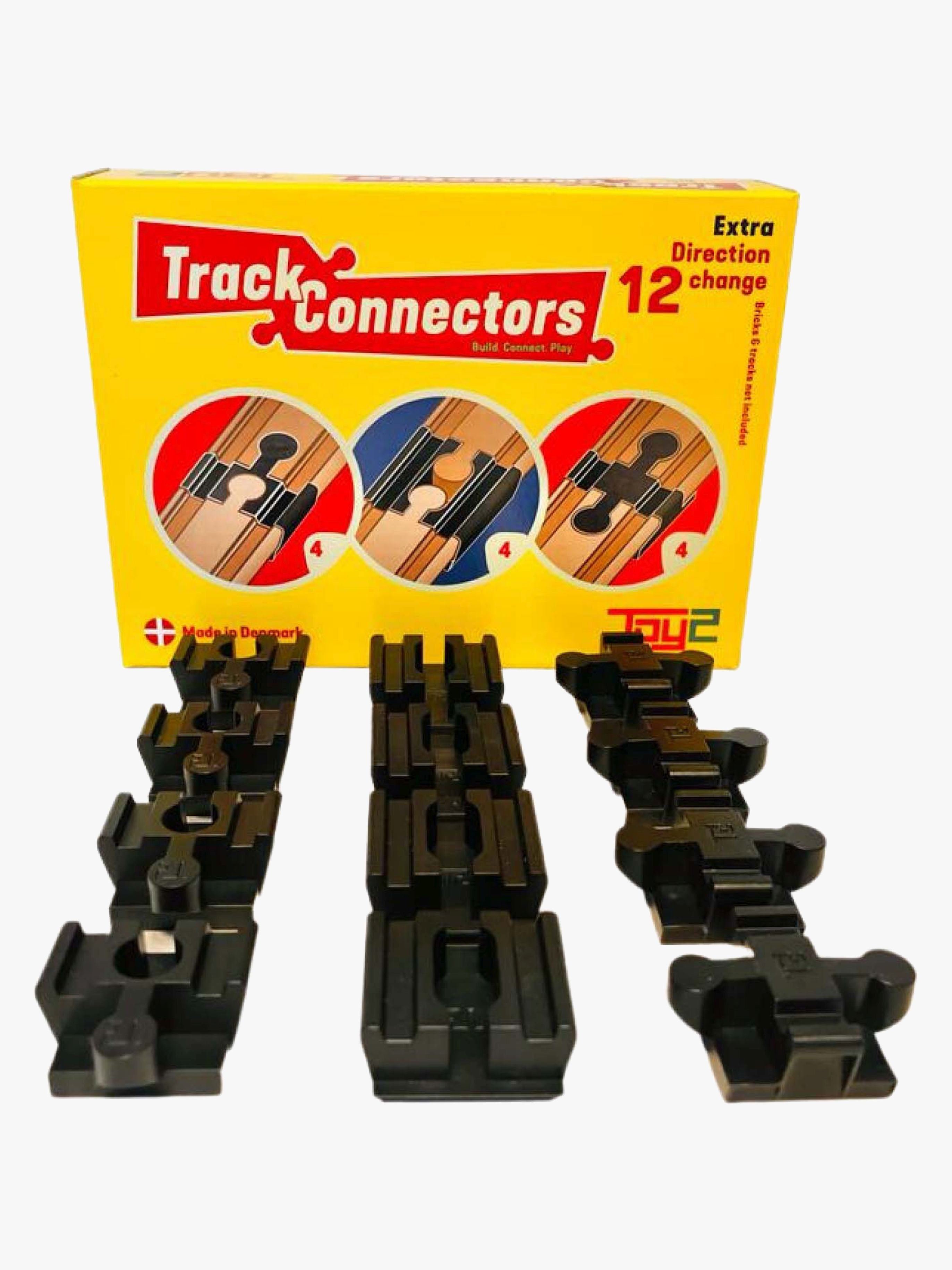 Connectors Direction Change togbane fra Toy2 Track. Med Directoin Change kan du bygge avancerede projekter, let dreje om hjørner og krydse andre baner. Perfekt til at starte store og avancerede byggeprojekter med. Kan kombineres med togspor fra BRIO®, Thomas Tog, IKEA osv. Byggeklodser og togspor medfølger ikke. Anbefalet alder: Fra 3 år plastik