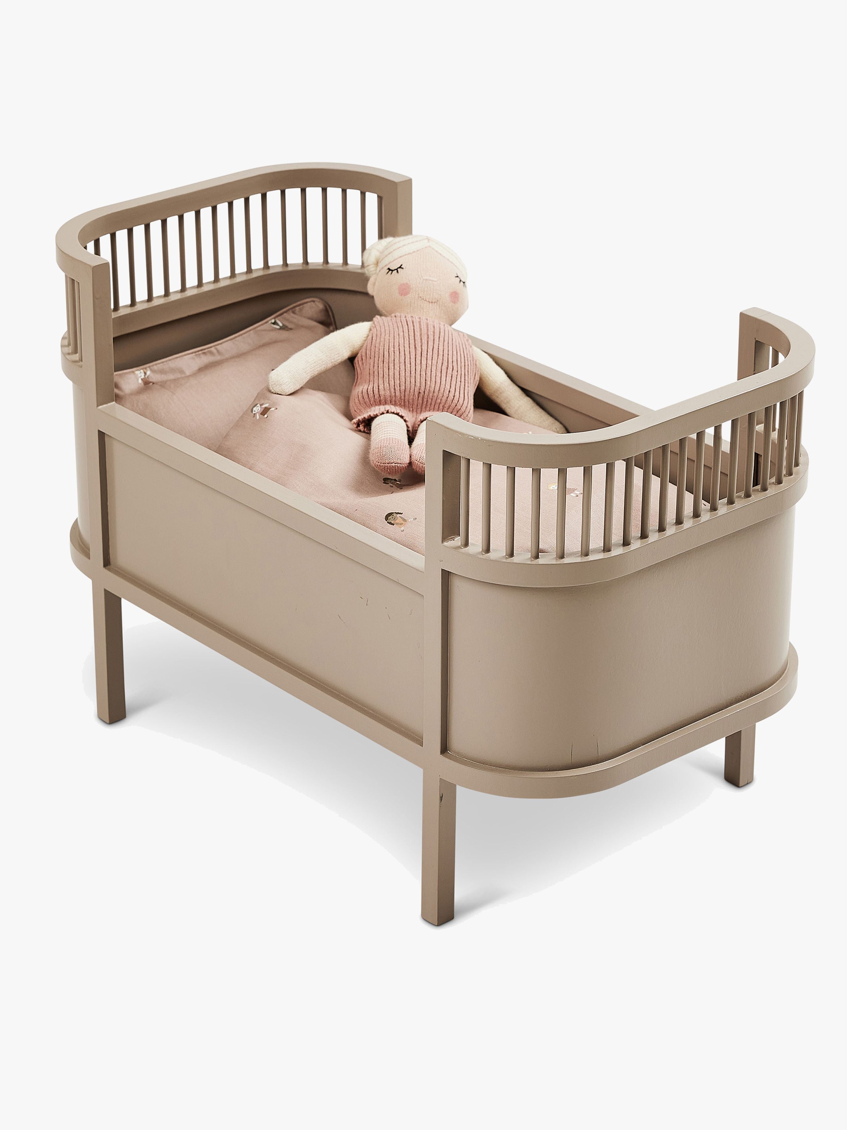 Rosaline dukkeseng fra Smallstuff med et stilfuldt, retroinspireret design. Den har fine gavle og åbne sider hvilket gør det nemt at lægge din dukke i seng. Dukkesengen har en blød, fin madras. Perfekt til timevis af fantasifuld leg. CE-mærket. Dukken medfølger ikke. Sengesættet sælges separat. Sengemål: 49,5 x 26,5 cm. Anbefalet alder: Fra 3 år. krydsfiner.