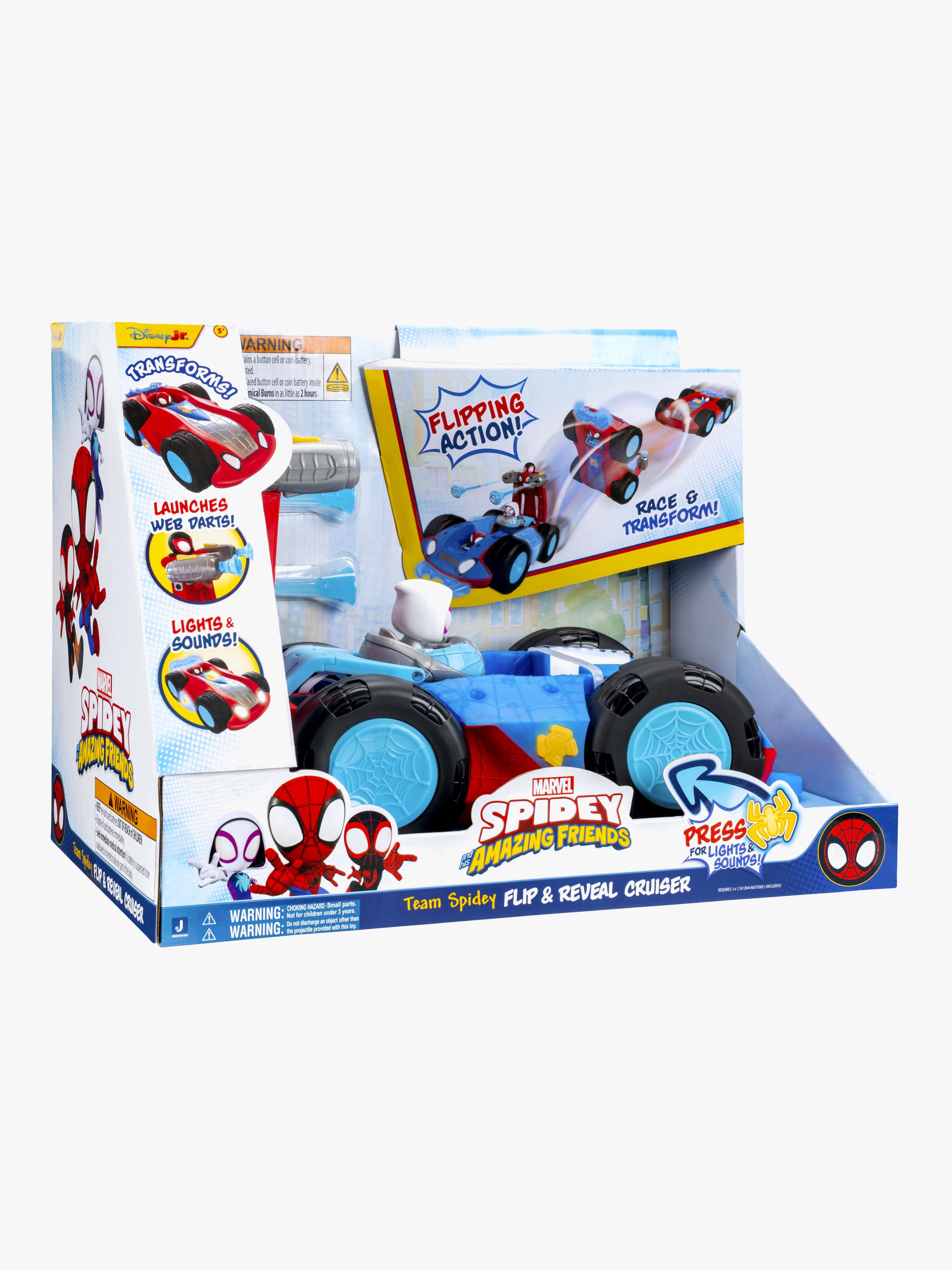 Flip & Reveal bilsæt fra Spidey And His Amazing Friends med en sej, 2-i-1 funktion at udforske. Perfekt til masser af leg. - 2-i-1-funktion. - Inkluderer: 2 webpile. - Lyd- og lyseffekter. - Perfekt til alle Spider-Man-fans. - CE-mærket. - Anbefalet alder: Fra 3 år. - Batteri: 3xLR44 (medfølger).