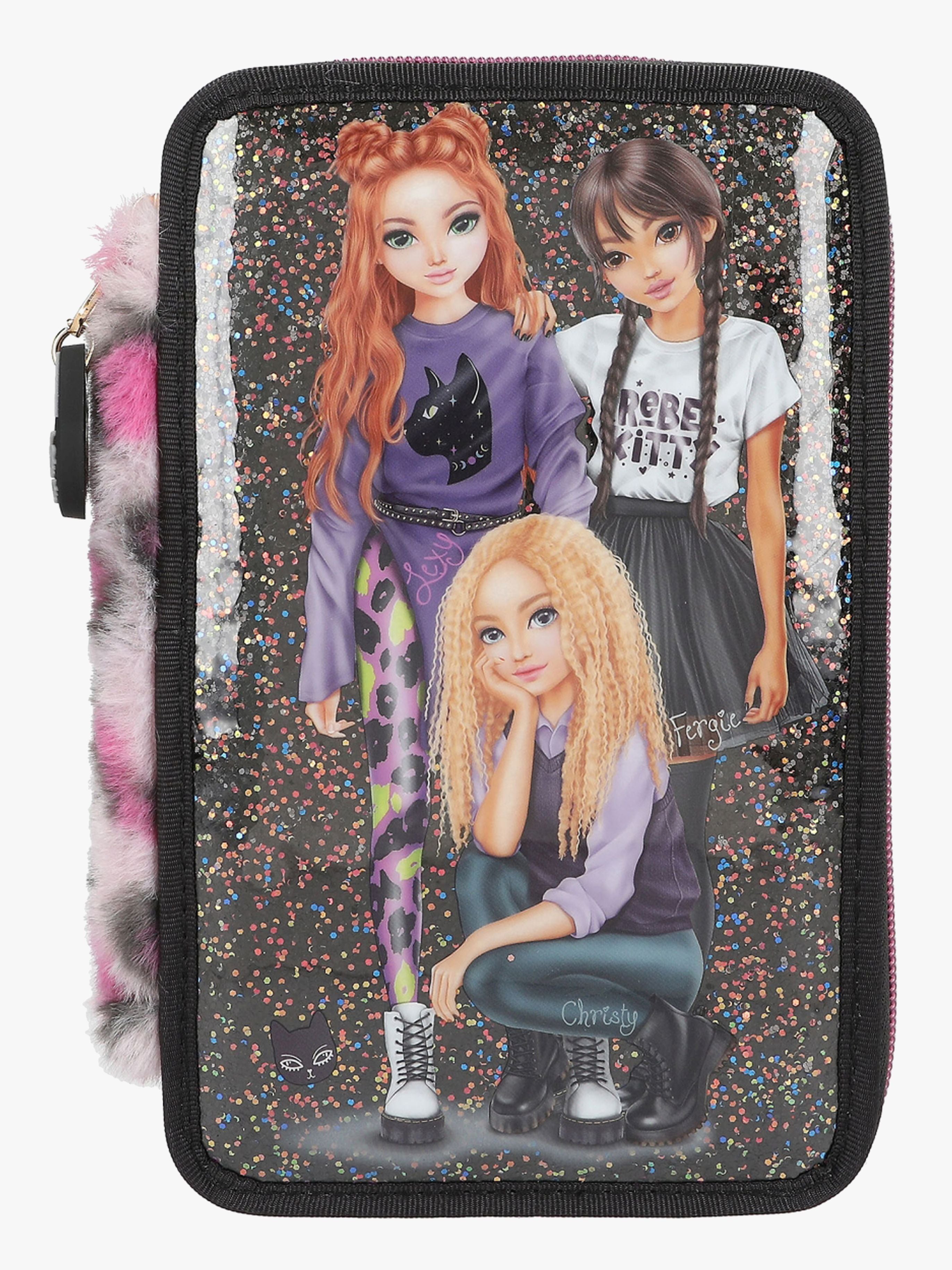 Fint tredelt penalhus fra TOPModel med et komplet skrivesæt og sjovt tilbehør. Perfekt til kreative aktiviteter. - Indeholder: 1 penalhus, 18 farveblyanter, 18 tusser, 2 blyanter, 1 saks, 1 limstift, 1 blyantspidser, 1 lineal, 1 viskelæder. - Tre rum. - TOPModel-motiver. - CE-mærket. - Anbefalet alder: Fra 8 år. - PES.