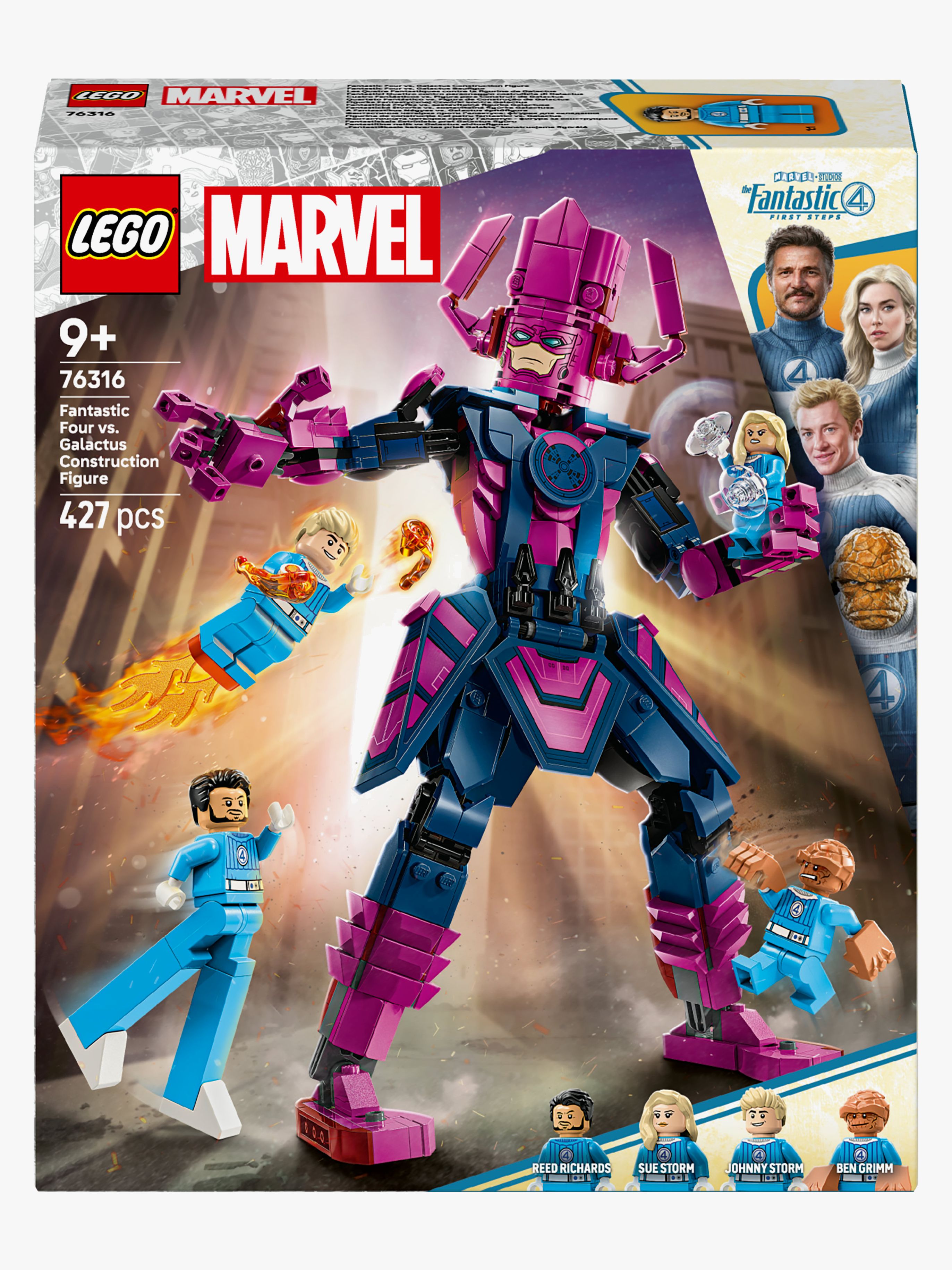 Fans af Marvel Studios-filmen The Fantastic Four: First Steps kan genskabe actionscener fra filmen med LEGO ǀ Marvel byggesættet Fantastic Four mod Galactus-byggefigur 76316, det første LEGO Fantastic Four sæt nogensinde! Den imponerende gave til drenge og piger fra 9 år er et bygge- og legesæt til børn, der elsker superhelte-eventyr. LEGO ǀ Marvel Fantastic Four-legetøjet indeholder 4 minifigurer: Mr. Fantastic, hvis ben kan forlænges, Human Torch med 2 håndholdte blastere og flammeelementer under fødderne samt et gennemsigtigt element, så han kan "flyve", Invisible Woman med 2 kraftskjolde og The Thing med sine store, stærke hænder. Den fuldt leddelte byg-selv-figur af filmens ikoniske skurk, Galactus, er over 28 cm høj. Den bevægelige figur inspirerer til endeløs action, når han kæmper mod superheltene. For at få ekstra digitalt sjov kan byggere zoome ind på og dreje modeller i 3D samt holde styr på deres fremskridt, i den sjove, intuitive LEGO Builder app. Indeholder 427 elementer. — LEGO bygge- og legesæt baseret på Marvel Studios-filmen The Fantastic Four: First Steps — 4 minifigurer: Mr. Fantastic, Human Torch, Invisible Woman og The Thing — Stor, fuldt bevægelig model af filmens skurk, Galactus — Dette byggelegetøj er det første LEGO Fantastic Four byg-selv-sæt nogensinde — Fantastic Four-gave til børn, der er fans af superhelte og Marvel-film — Børn kan zoome ind på og dreje byggesæt i 3D ved hjælp af den intuitive LEGO Builder app — LEGO ǀ Marvel byg-selv-sæt giver børn endeløse superhelte-eventyr mellem hænderne — Samlesættet med 427 elementer omfatter en model af Galactus, der er over 28 cm høj