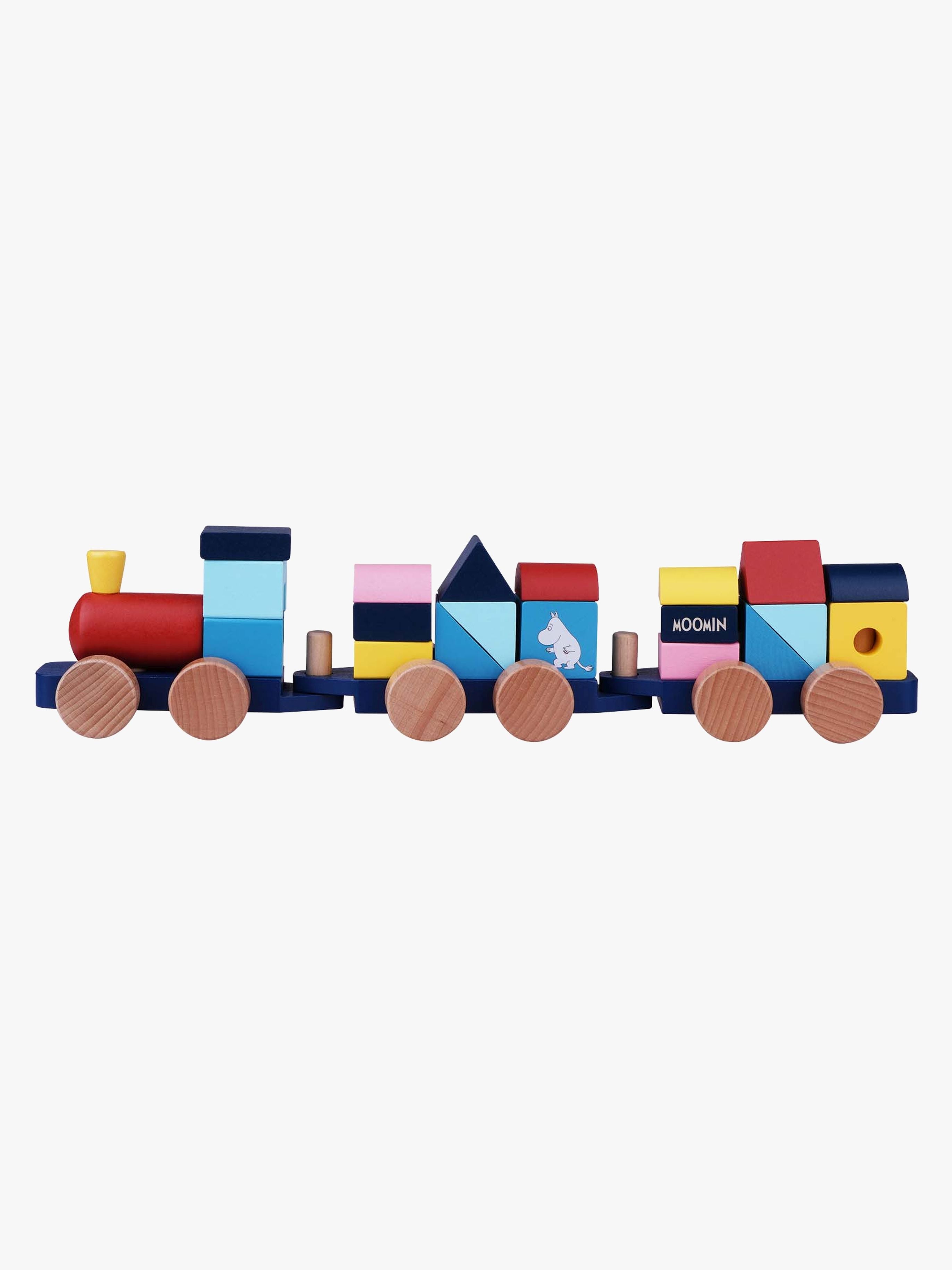 Fint tog med klodser fra Moomin med klodser i forskellige former og farver. Perfekt til træning af dit barns koordination og finmotorik. - Stabelbare klodser. - Formet som et tog. - Forskellige farver og former. - Motiv fra Mumitroldene. - CE-mærket. - Anbefalet alder: Fra 3 år. - Træ.