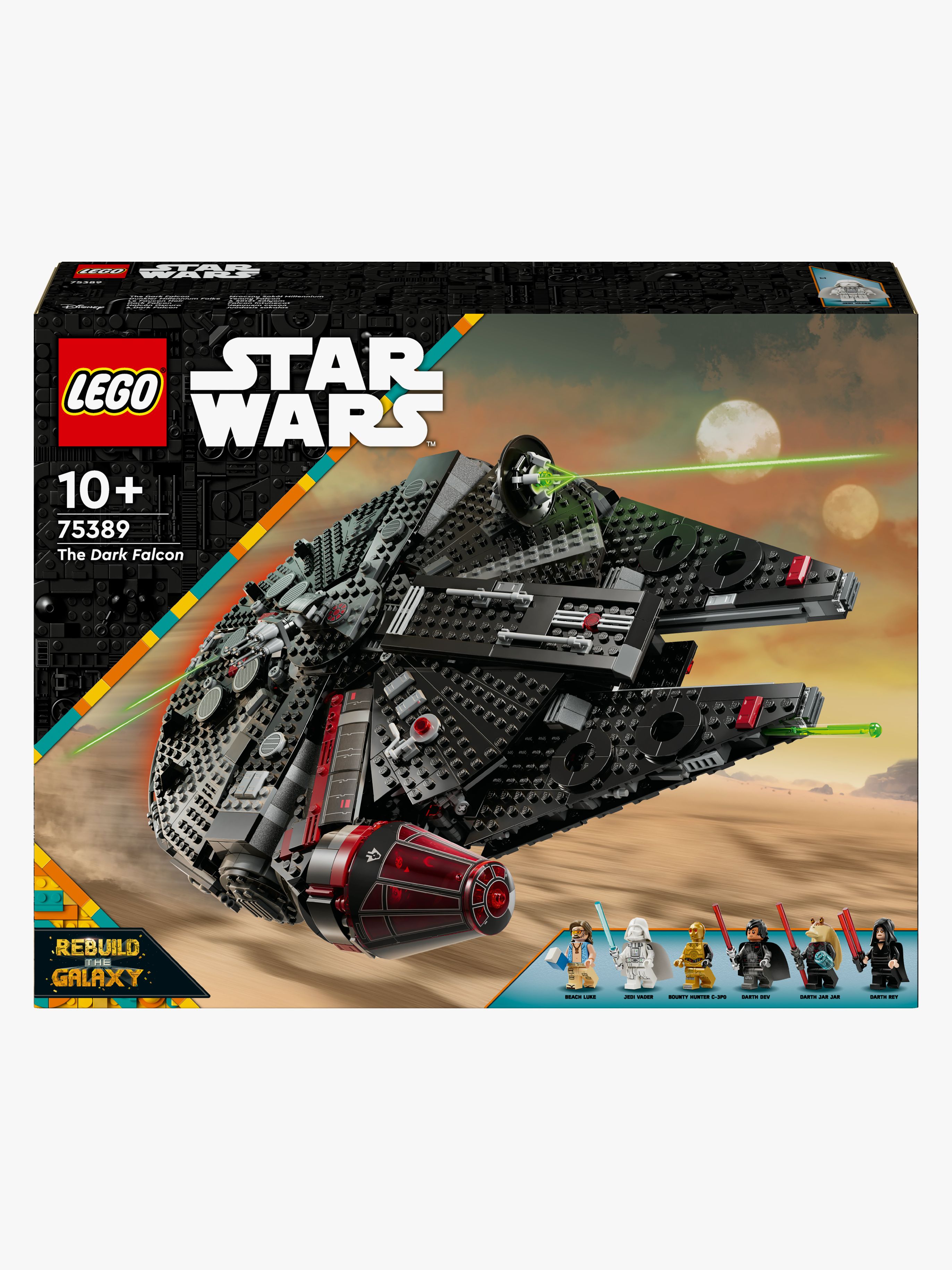 Vend op og ned på LEGO Star Wars universet med byggelegetøjet Sortefalken 75389 til børn. Det indeholder en mørk version af Tusindårsfalken, som set i Disney+serien LEGO Star Wars: Rebuild the Galaxy. Det klodsbyggede LEGO Star Wars rumskib vil være en spændende fødselsdagsgave til drenge, piger og enhver fan fra 10 år og har paneler, der kan vippes op for at give nem adgang til det detaljerede interiør, bl.a. Darth Jar Jars trone, kommandocentral, hyperdrev, afslapningsområde og fængselscelle. Fjederbetjente skydere, drejelige kanoner og en aftagelig våbenstation styrker mulighederne for action-leg. Bygge- og legesættet med et rumfartøj indeholder også 6 LEGO Star Wars minifigurer, som du aldrig har set dem før, bl.a. Darth Jar Jar, strand-Luke og Jedi Vader. Byggesættet går godt med sættene 75388 Jedi Bobs stjernejager og 75393 Kombimodel: TIE-jager og X-wing sælges separat, som også indeholder fartøjer og figurer fra programmet LEGO Star Wars: Rebuild the Galaxy. LEGO Star Wars byggelegetøj med rumfartøjet Sortefalken 6 LEGO Star Wars minifigurer, bl.a. Darth Jar Jar og Darth Rey Aftageligt cockpit, 2 fjederbetjente skydere, 2 drejelige kanoner og meget mere Vip toppanelerne op for at lege med det detaljerede interiør Sjov fødselsdagsgave til drenge, piger og enhver Star Wars fan fra 10 år En del af LEGO Star Wars: Rebuild the Galaxy samlingen LEGO Star Wars sortimentet indeholder samlerobjekter som byggesæt til fans i alle aldre Bygge- og legesættet med et LEGO jedi-rumskib er over 43 cm langt