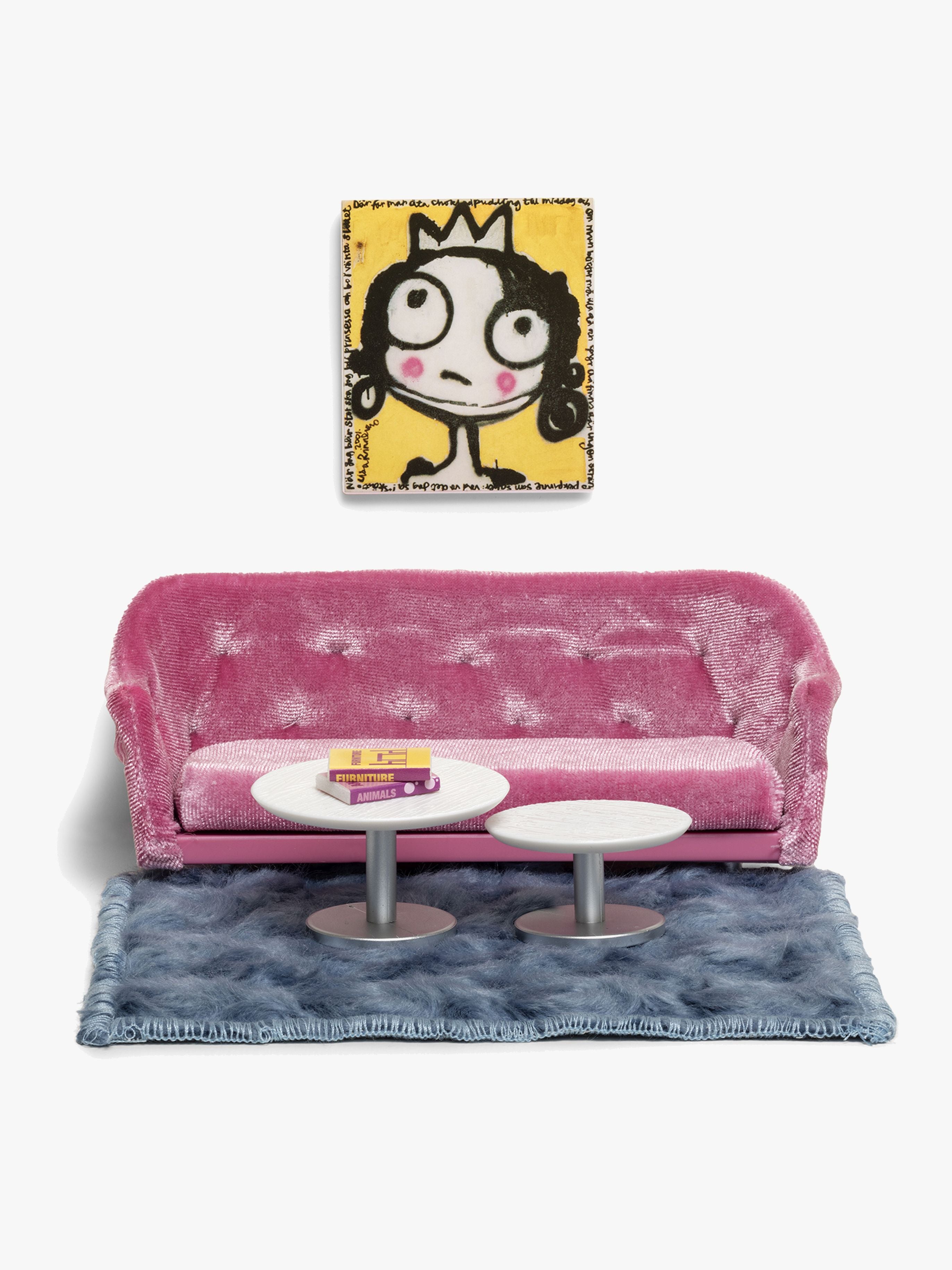 Et fint stuesæt fra Lundby. Med i sættet får du en sofa, to sofaborde, et tæppe og et flot billede. Sofaen er beklædt af velour, så den føles mere luksuriøs. Tæppet er tykt og blødt et perfekt afslappende sted for din dukkehusfamilie. Anbefalet alder: Fra 4 år.