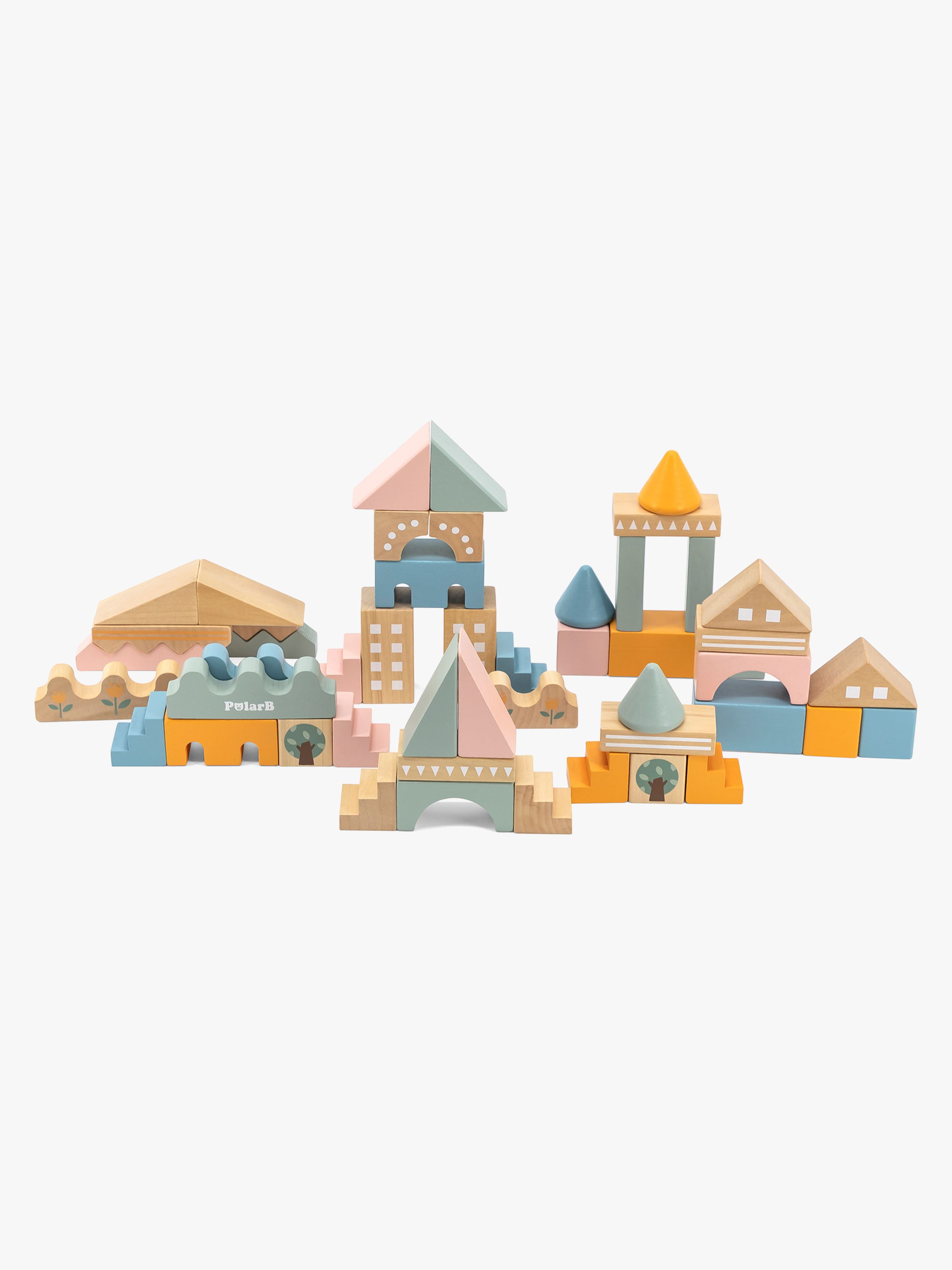 Byggeklodser fra PolarB med 50 brikker i forskellige former og farver med mange forskellige byggemuligheder. De har en praktisk opbevaringsboks med et håndtag. Perfekte til at træne dit barns hånd-øje-koordination og koncentration på en sjov måde. - CE-mærket. - Anbefalet alder: Fra 2 år. - Træ.
