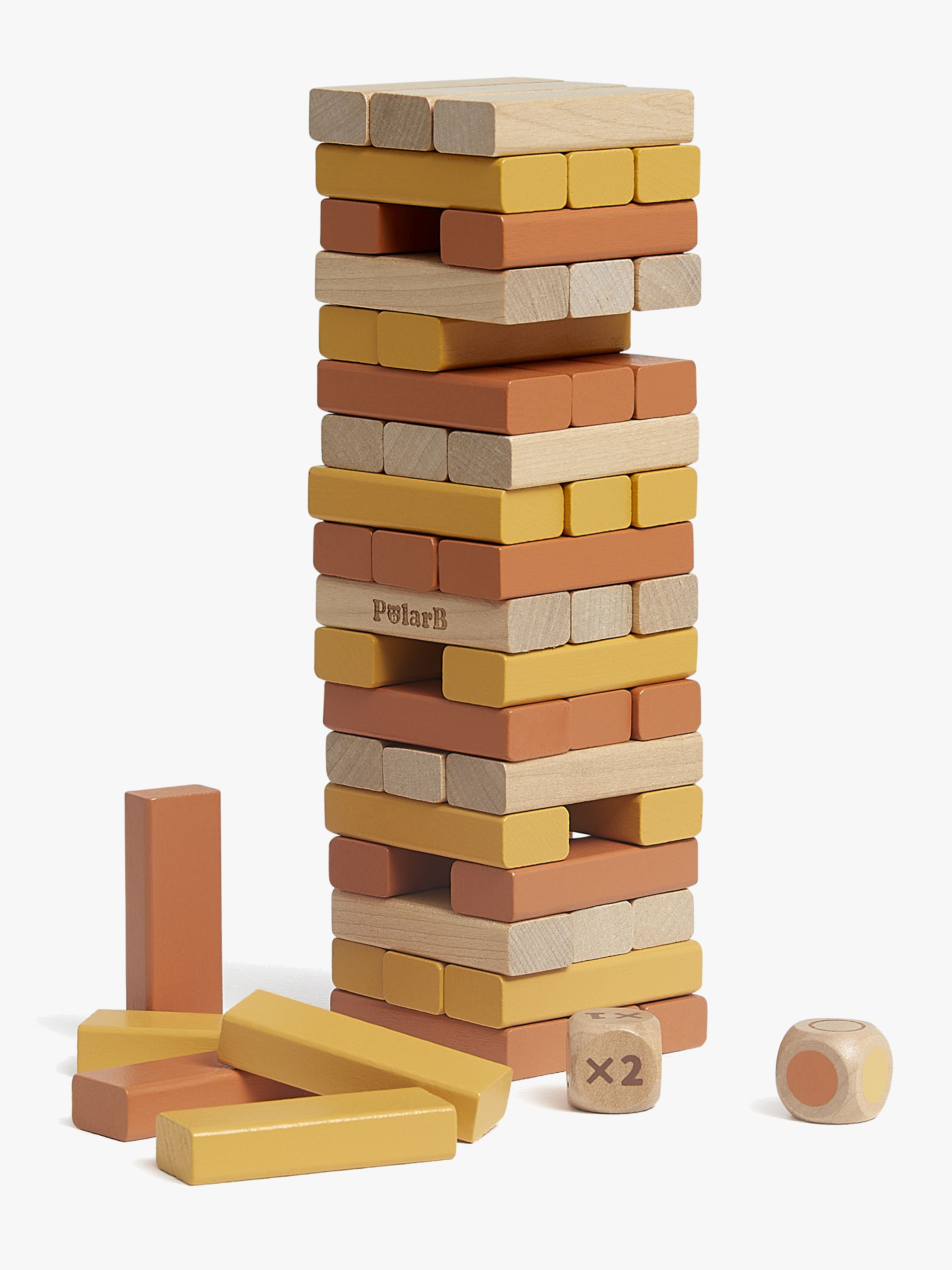 Klassisk spil fra PolarB med et underholdende twist. Perfekt til mange sjove spiløjeblikke. Kast terningen og følg vejledningen for at fjerne klodserne. Gå på tur, indtil stabeltårnet kollapser. - Indeholder: 54 klodser, 2 terninger. - CE-mærket. - Anbefalet alder: Fra 3 år. - Træ.