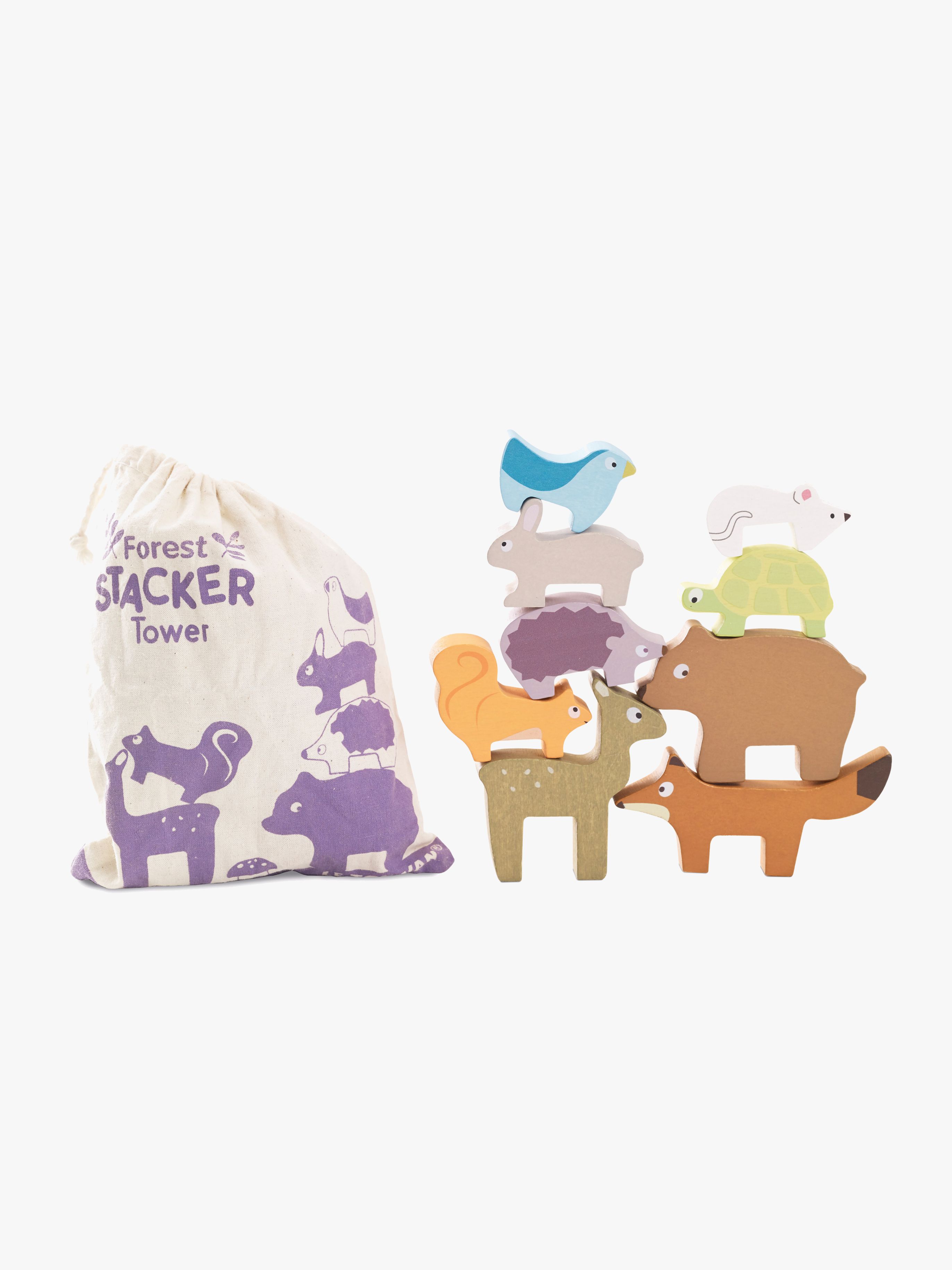 Stableklodser fra Le Toy Van med et sødt dyretema. De har en praktisk opbevaringspose. Perfekte til udvikling af barnets finmotorik. - Indeholder: 9 skovdyr, 1 opbevaringspose. - Balanceres og stables oven på hinanden. - Til sjov og fantasifuld rolleleg. - Detaljeret design. - CE-mærket. - Anbefalet alder: Fra 1,5 år. - Træ.