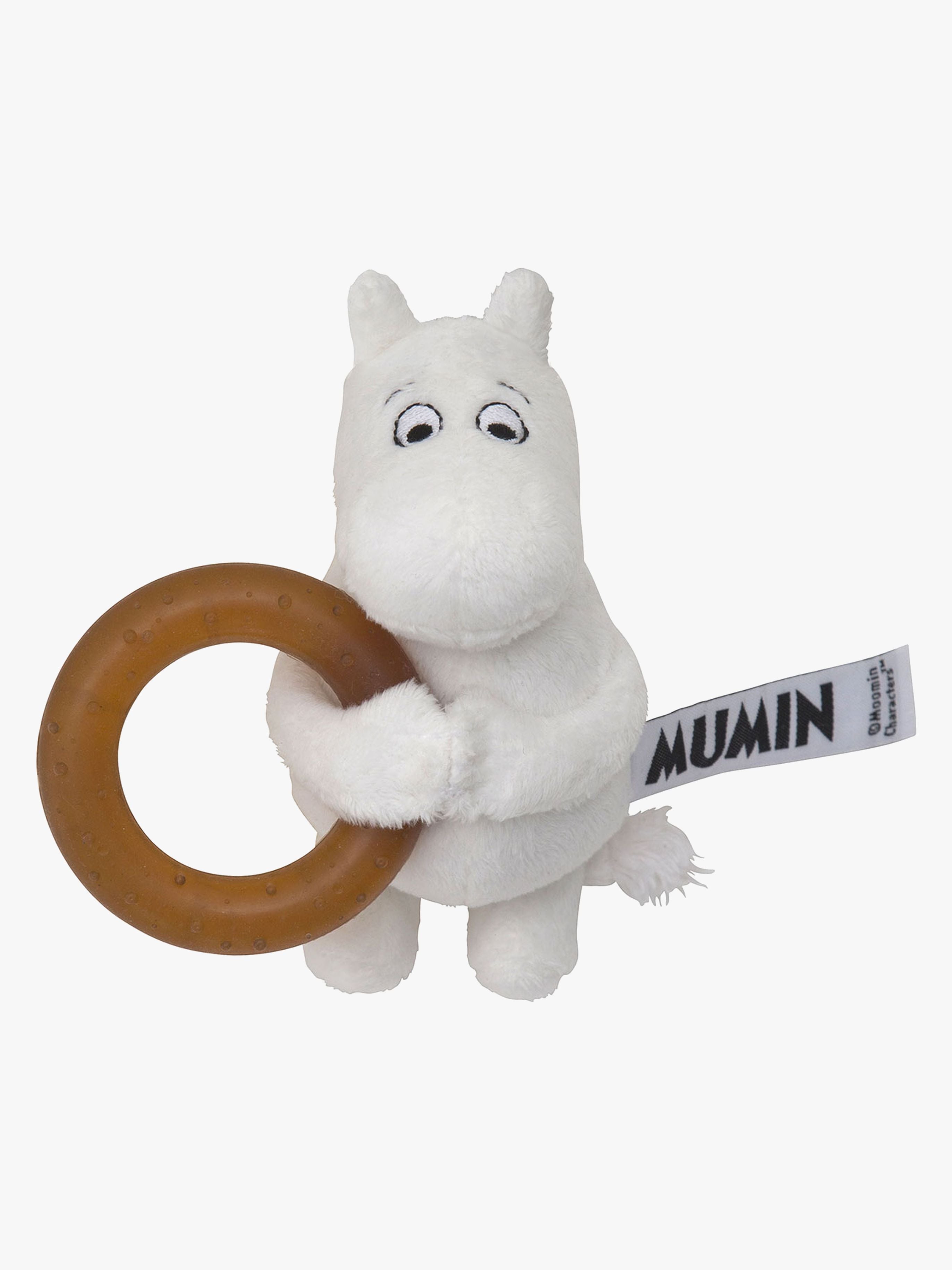 Dette skųnne bidelegetųj er med vores elskede Mumitrolde! Den formbare gummiring opmuntrer dit barns naturlige bidemotorik og er sjov at holde fast. Det mųnstrede design giver ro og masserer irriteret tandkųd. Eftersom bideringen er produceret i ét stykke, er der ingen revner eller samlinger, som bakterier kan samles i, hvilket gųr den ekstra hygiejnisk. Ringen kommer i en fin pakke, hvilket gųr den perfekt som gave! Anbefalet alder: Fra 0 måneder. Mål: H13 cm. Mål på pakken: 23 x 16 x 8 cm. Materiale: Polyesterplys, 100 % naturgummi (bidering). Fri for ftalater, farver, PVC, Evatane, silikone og BPA. Vaskeanvisning: Håndvask 30°C med håndvaskemiddel.
