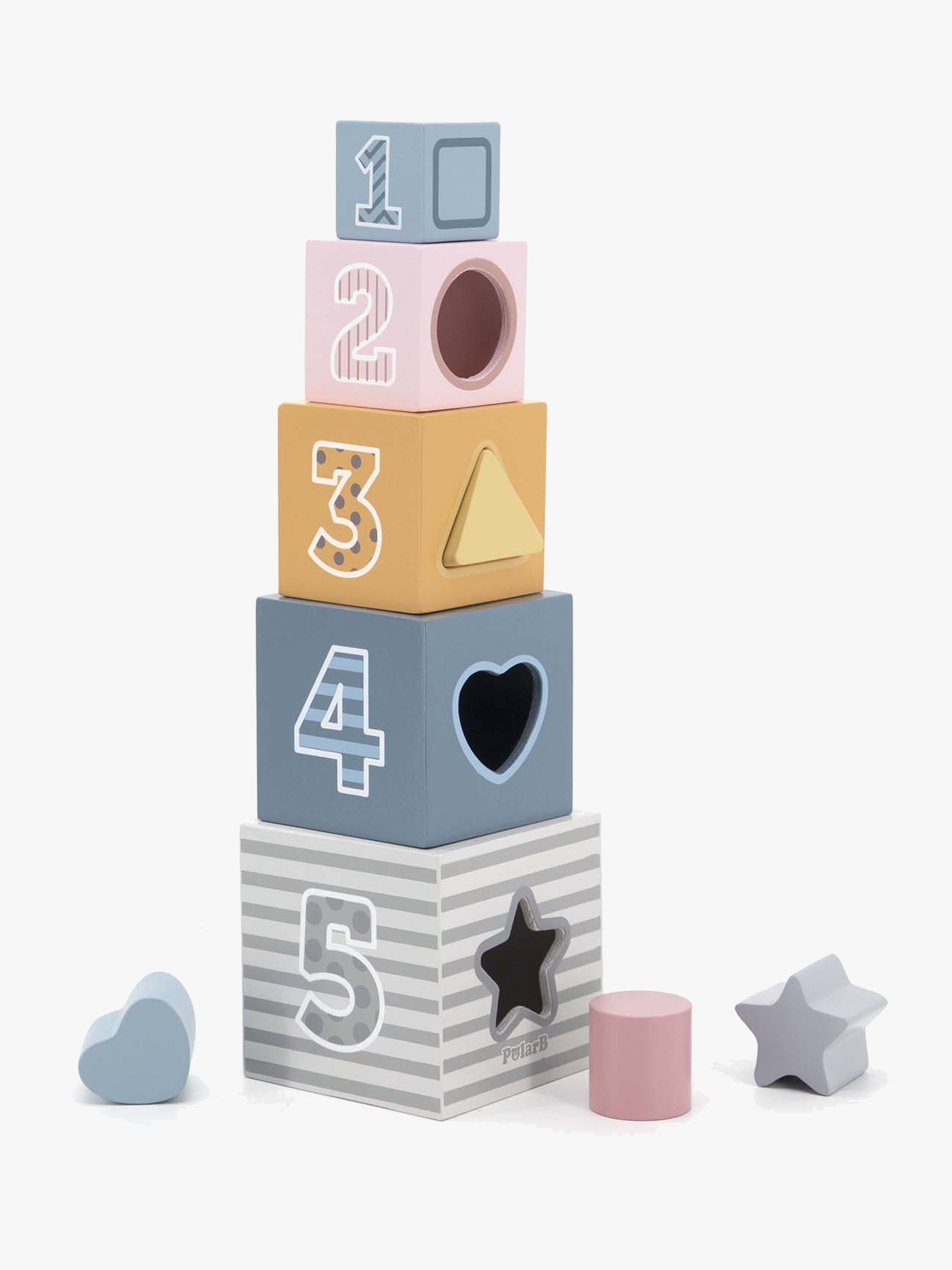Fint sæt med fem træklodser i forskellige størrelser. Klodserne kommer i forskellige farver og har fine motiver af dyr, cifre og mønstre. Sjovt legetøj, der lader dit barn øve sin hånd-øje-koordination. Anbefalet alder: Fra 12 måneder.