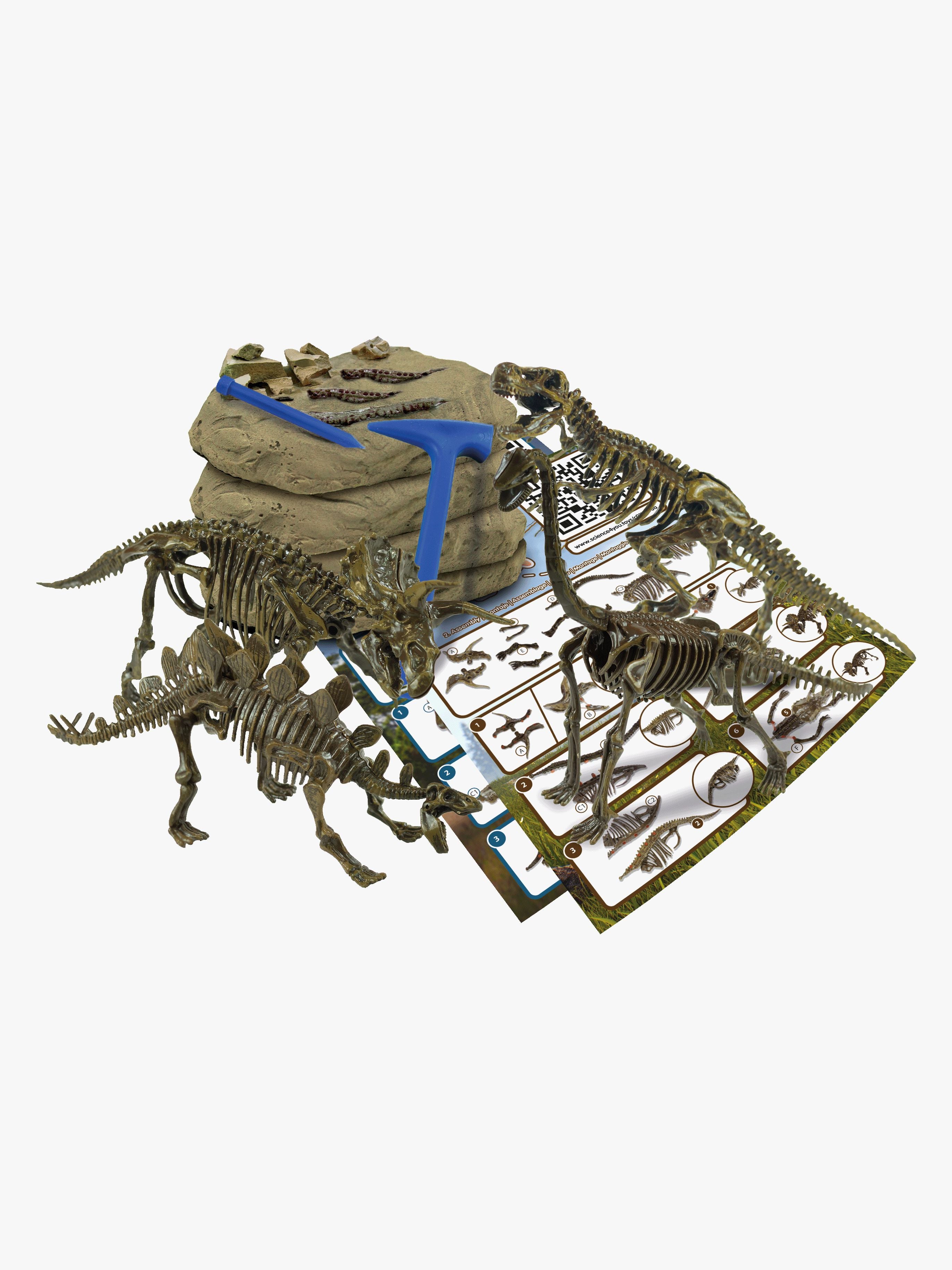 Udgravningssæt fra Toyrock med fire forsvundne dinosaurfossiler. Perfekt til unge eventyrere. - Indeholder: 4 dinosaurfossiler, 1 hammer, 1 mejsel. - Sættet lærer børnene, hvordan en arkæologisk udgravning foregår. Med den medfølgende hammer og mejsel kan børnene grave de gemte fossiler frem. - STEM-legetøj (naturvidenskab, teknik, konstruktion og matematik). - CE-mærket. - Anbefalet alder: Fra 6 år.