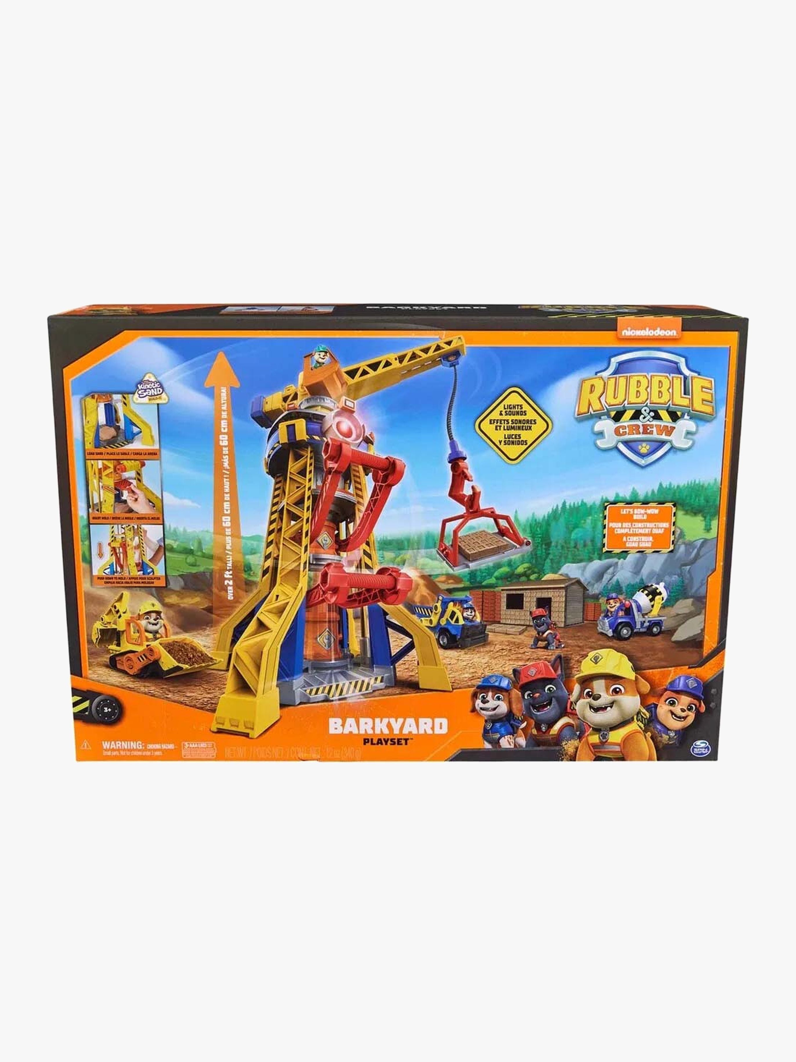 Bark Yard kran fra Rubble & Crew. Perfekt til alle Paw Patrol-fans. - Rubble-figur. - Legetøjsbulldozer med fungerende værktøj. - Roterbar kran med grab. - Realistiske detaljer. - Realistiske funktioner. - Lys- og lydeffekter. - Brug det medfølgende kinetiske sand til at lave dine egne byggeklodser. - Saml på alle produkterne i serien. - CE-mærket. - Inkluderer: 340 g kinetisk sand, hundehvalp, transportmiddel. - Anbefalet alder: Fra 3 år. - Batterier medfølger ikke.