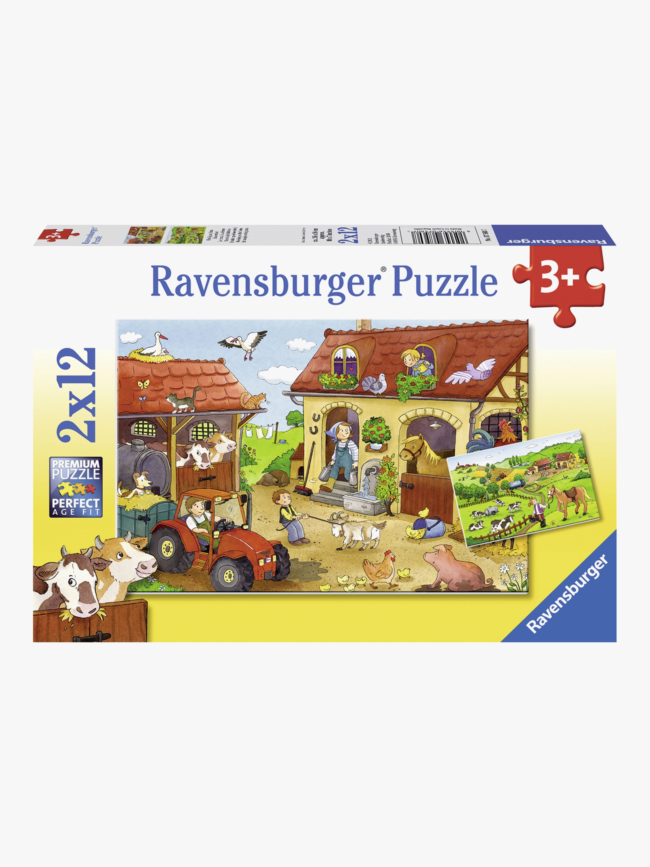 To puslespil fra Ravensburger med motiver fra bondegården. Hvert puslespil består af 12 brikker. Stimulerer øje-til-hånd-koordinationen og er perfekt til at træne dit barns finmotorik med! Mål: 27,5 x 19,2 cm Anbefalet alder: Fra 3 år.