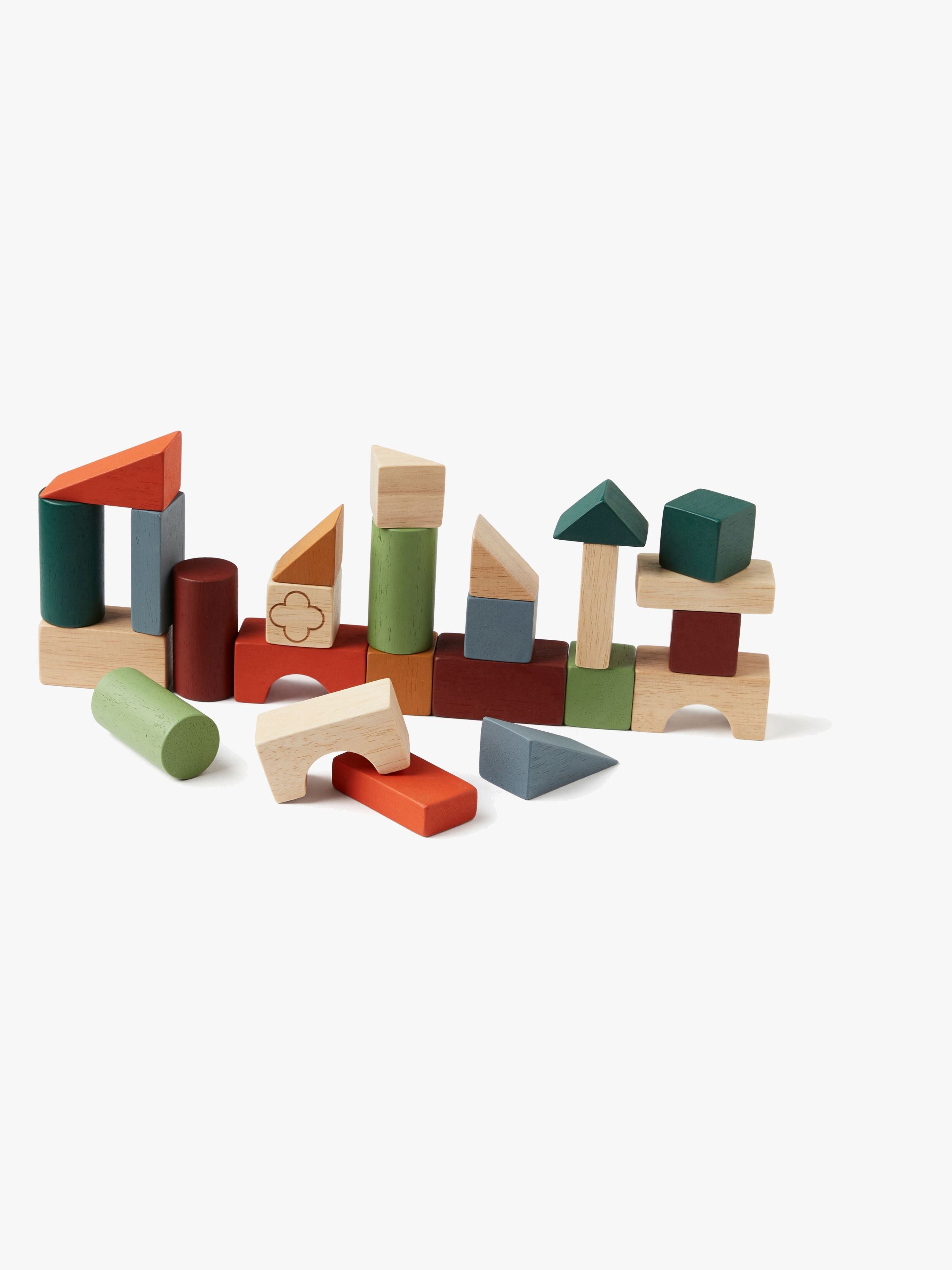 Klodser fra Kids Concept med en opbevaringskasse i træ. De har 25 klodser i forskellige former. Perfekte til træning af barnets øje-hånd-koordination samt forståelsen af form og farver. - CE-mærket. - Anbefalet alder: Fra 12 måneder. - Bøgetræ.