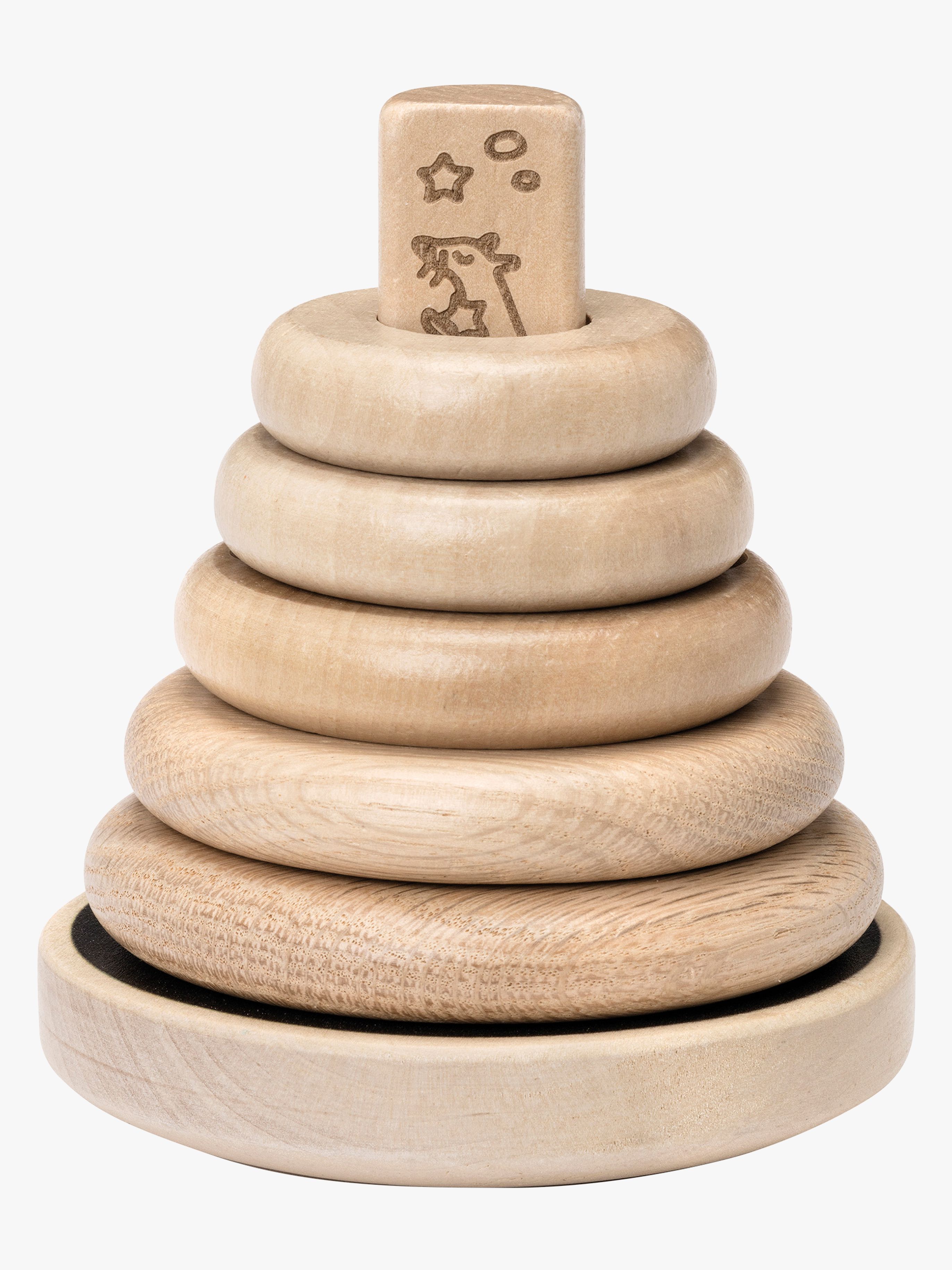 Klassisk stablelegetųj fra Micki med fem ringe. Det har fine, graverede illustrationer. Perfekt til tręning af dit barns finmotorik. Ringene kan stables i vilkårlig rękkefųlge og giver barnet en fornemmelse af, hvordan de forskellige stųrrelser hęnger sammen. - CE-męrket. - Anbefalet alder: Fra 10 måneder. - Trę, MDF.