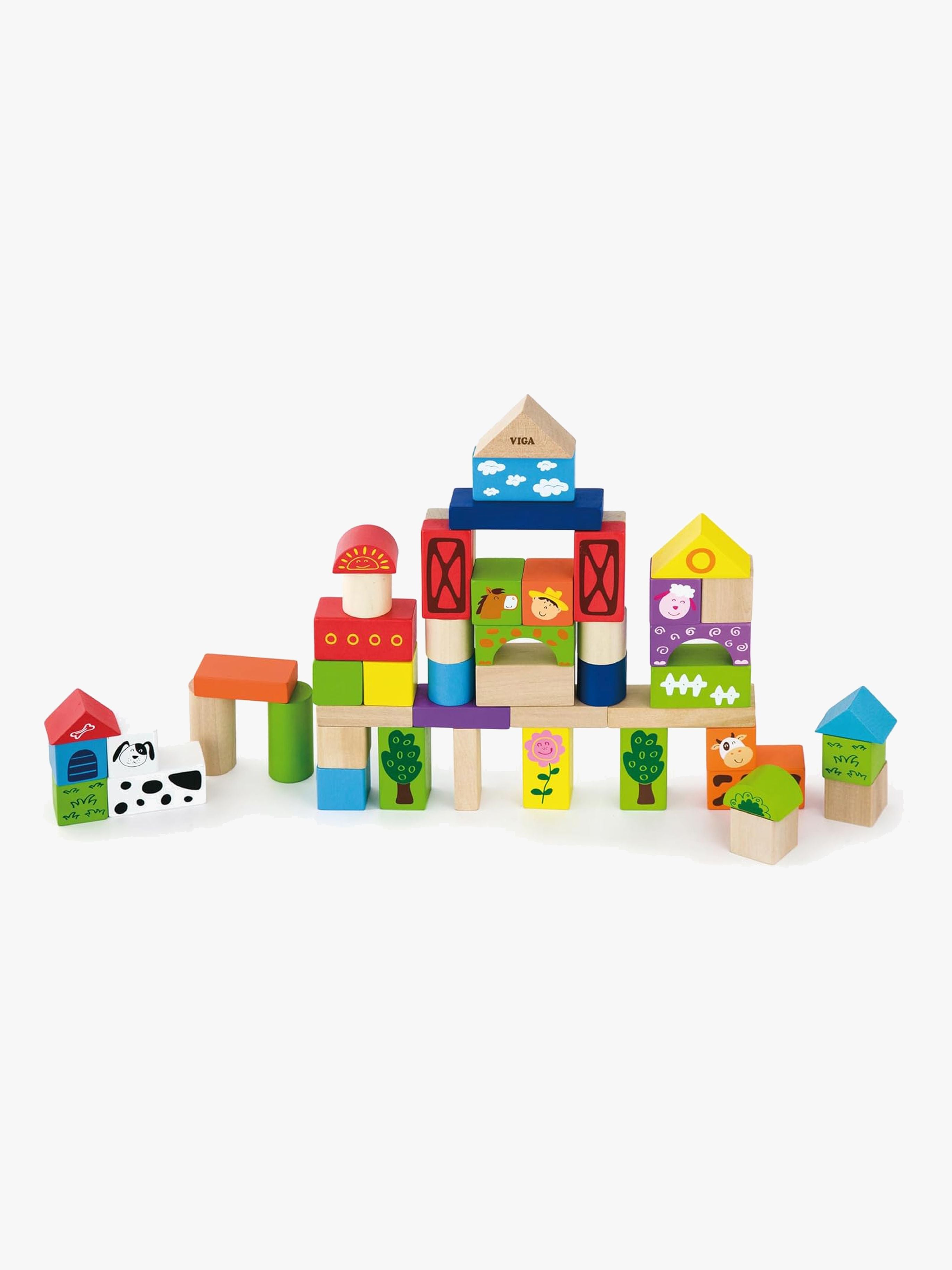 Træklodser fra VIGA i forskellige former og farver med et indbydende bondegårdstema. Perfekte til træning af dit barns koordination og finmotorik. - 50 stk. - Praktisk opbevaringskasse medfølger. - Slip kreativiteten løs. - Perfekt til træning af former og farver, hånd-øje-koordination og finmotorik. - CE-mærket. - Anbefalet alder: Fra 2 år. - Træ.