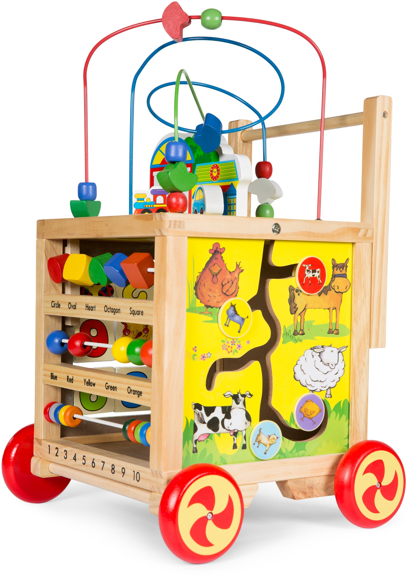 Giv de mindre børn en håndsrækning, når de skal lære at gå og stavrer derud af. Med den søde gåvogn fra Woodlii er der både noget, tumlingerne kan støtte sig til, og noget, de kan pakke yndlingsbamsen på. Desuden er denne gåvogn udrustet med ur, kuglebane og meget mere, så man kan holde pause og lege på turen. Et skønt legetøj med masser af lærerige aktiviteter, som både underholder og udvikler børnene. Anbefalet alder: Fra 12 mdr. Mål: H54,5 x B35 x D32,5 cm. Materiale: Træ, plastik og metal.