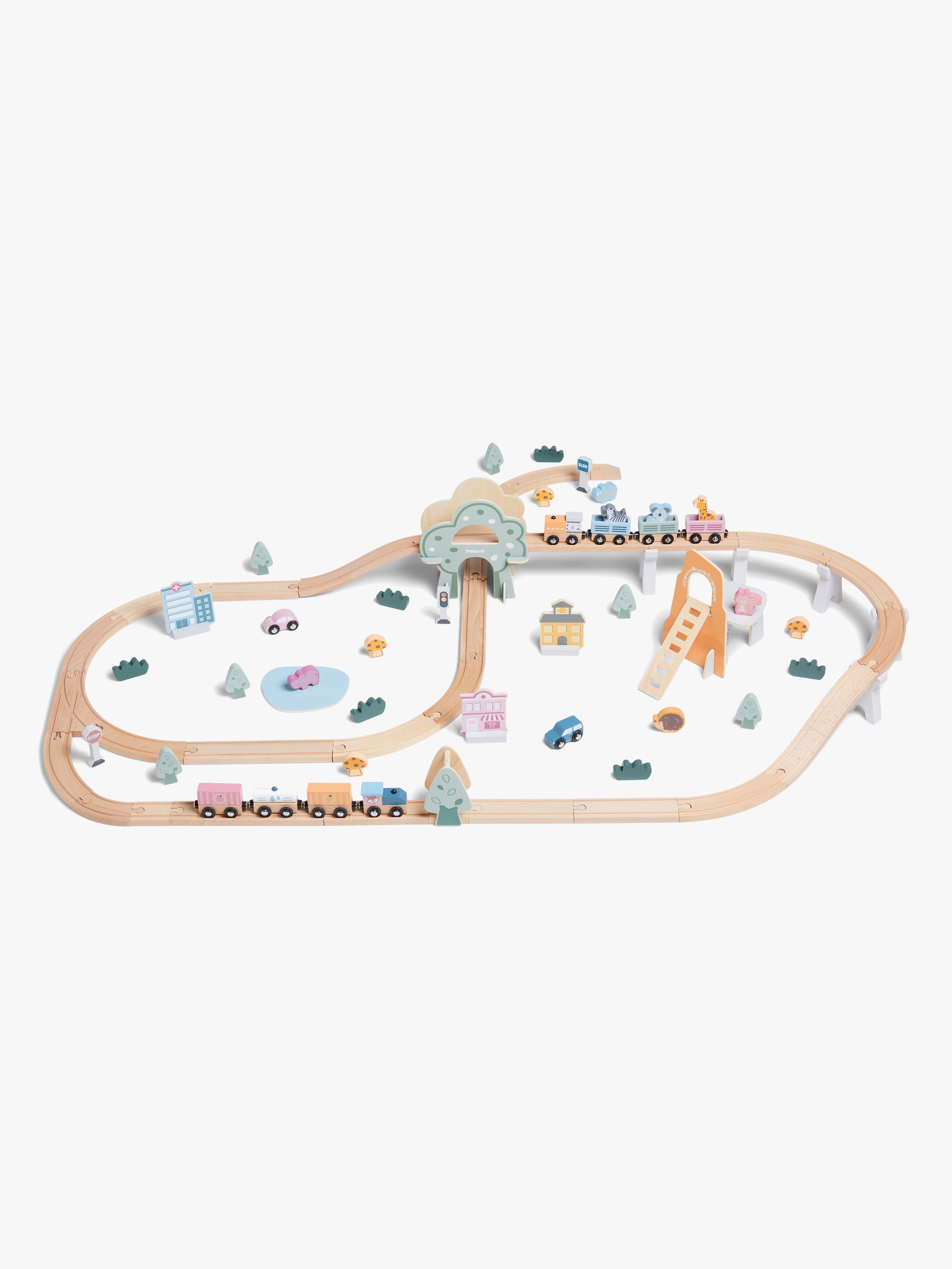 Togbane fra PolarB med 90 dele. Den har en masse sjovt tilbehør. Perfekt til mange timers kreativ leg. - Anbefalet alder: Fra 3 år.