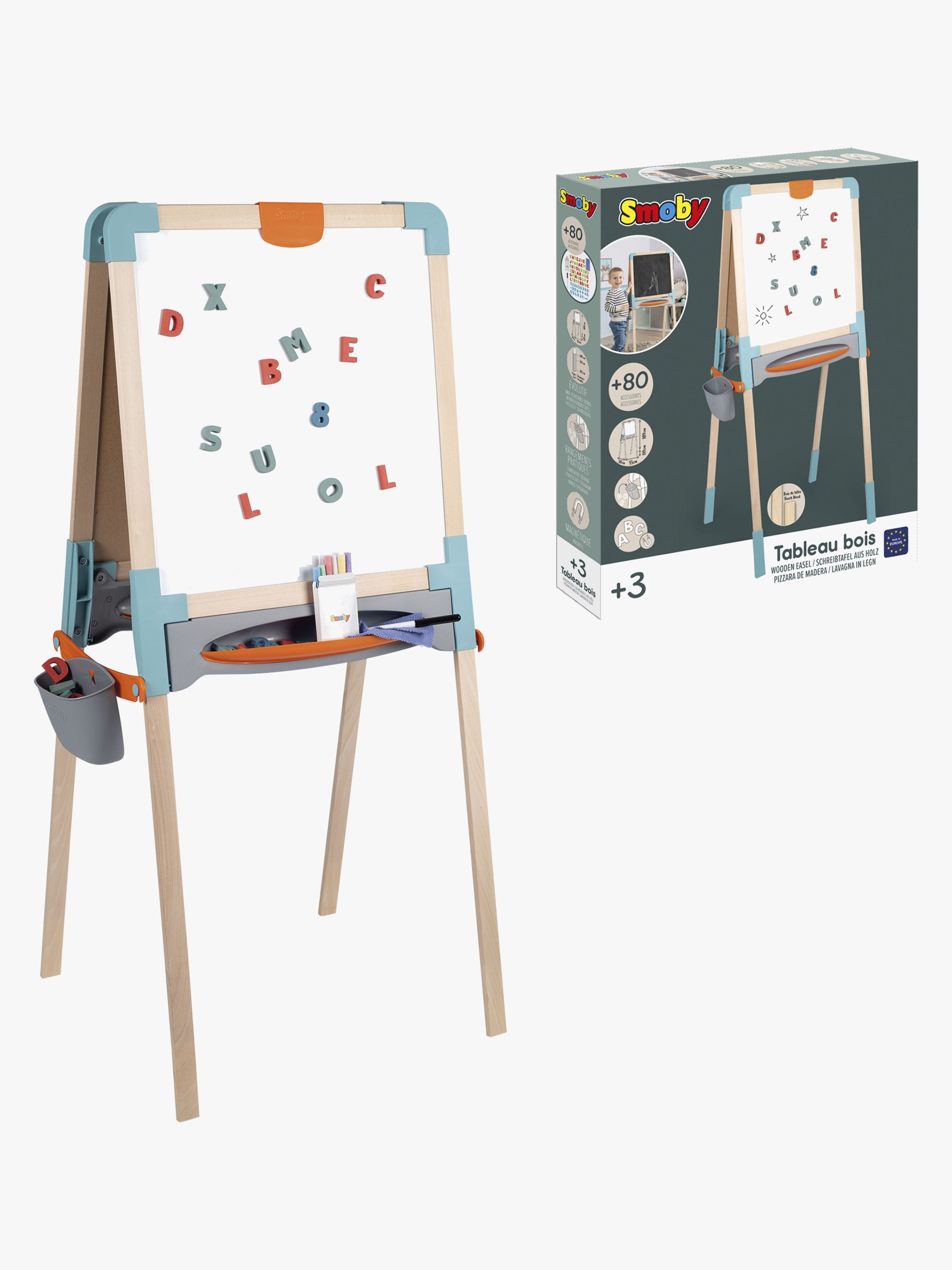 Dobbeltsidet staffeli fra Smoby med en magnetisk side og en tavleside. Det har 80 medfølgende tilbehør. Perfekt til kreative aktiviteter. - Indeholder: 72 bogstaver og tal, 1 tus, 6 farvekridt, 1 klemme, 1 svamp. - Kompakt og foldbar. - CE-mærket. - Anbefalet alder: Fra 3 år. - Plastik, træ, metal.