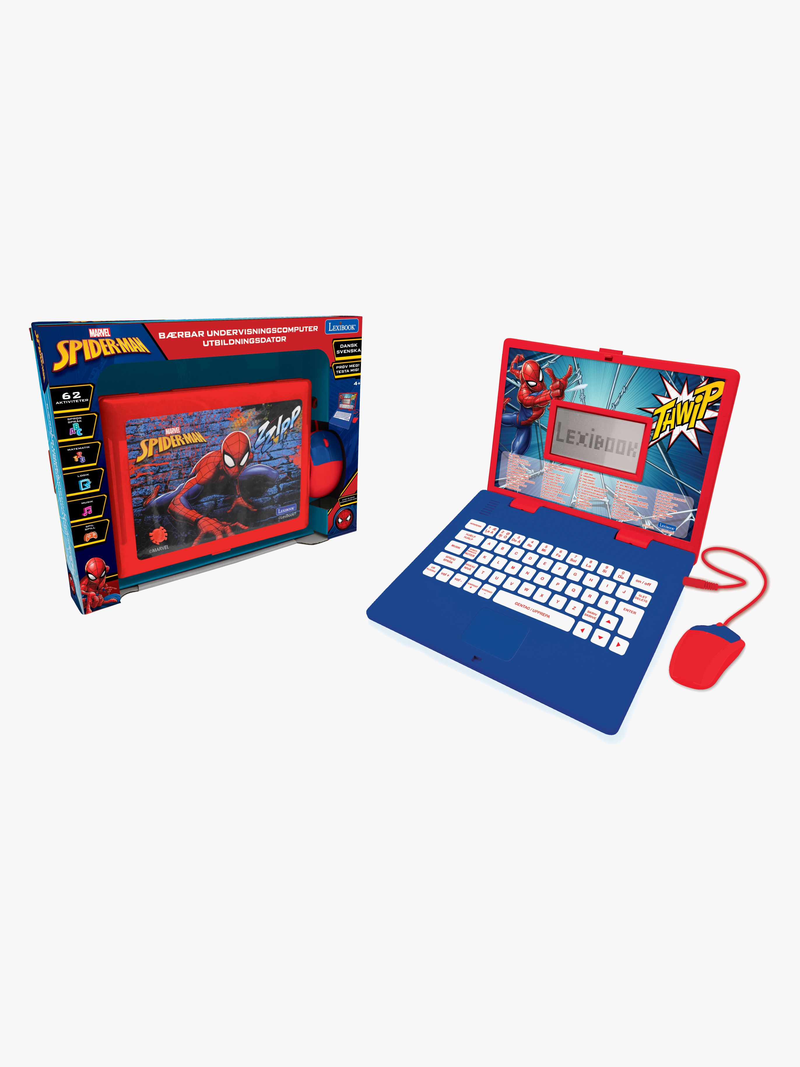 Lærerig bærbar computer fra Marvel Spider-Man med 62 forskellige aktiviteter at udforske. Perfekt til at gøre det sjovt at lære! - Aktiviteter indenfor sprog, stavning, matematik, logik, musik og spil. - Tilpassede sværhedsgrader. - Stor skærm. - Realistiske funktioner. - Kompakt og foldbar. - Sprog: Svensk og dansk. - Perfekt til alle Spider-Man-fans. - CE-mærket. - Anbefalet alder: Fra 4 år. - Batterier medfølger.