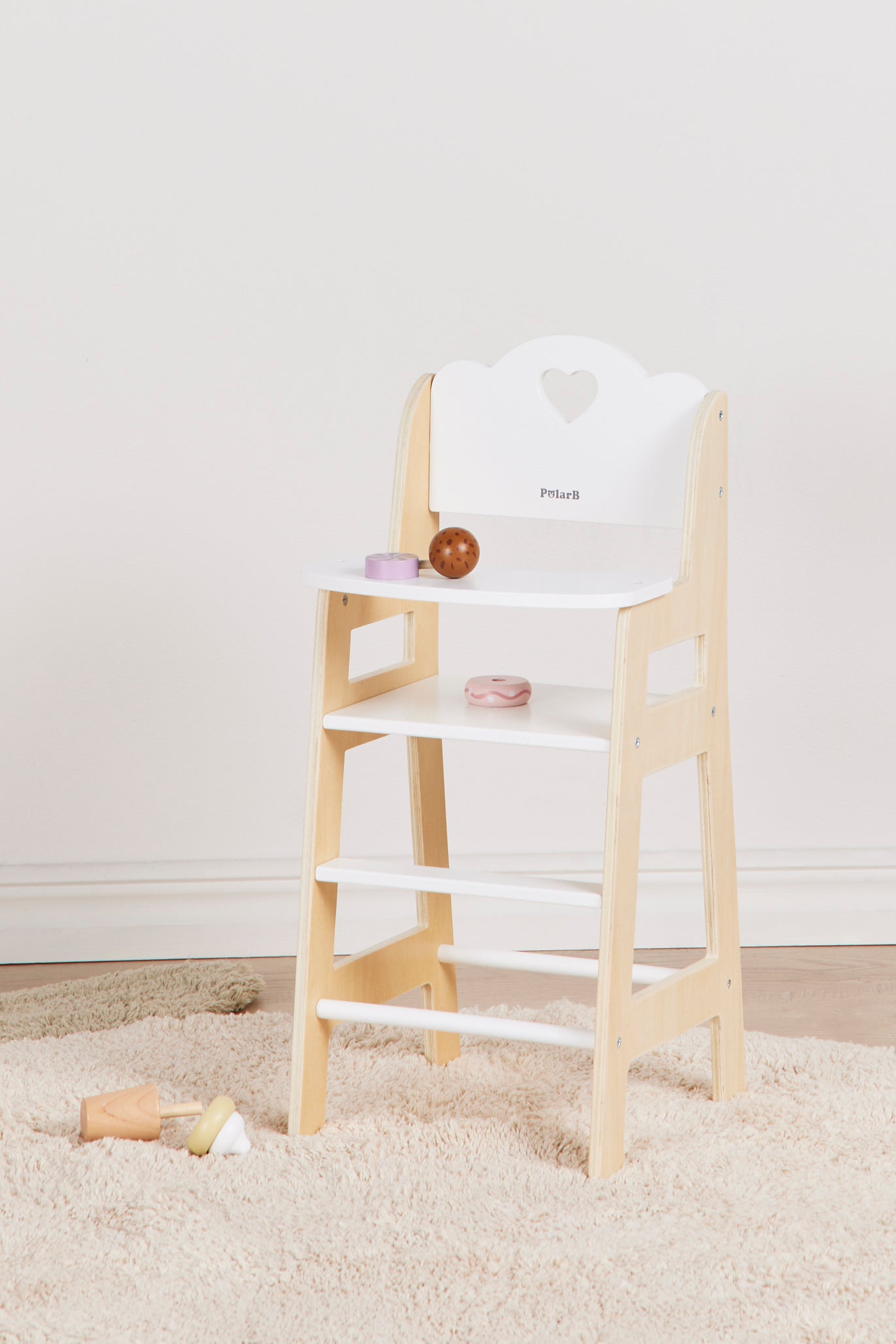 Dukkehøjstol fra PolarB med et stilfuldt design i flotte farver. Perfekt til timevis af fantasifuld leg. - Højstol til dukker og bamser. - Passer til dukker op til 38 cm. - Let at rengøre med en fugtig klud. - Opmuntrer til sjov rolleleg. - CE-mærket. - Anbefalet alder: Fra 3 år. - Træ.