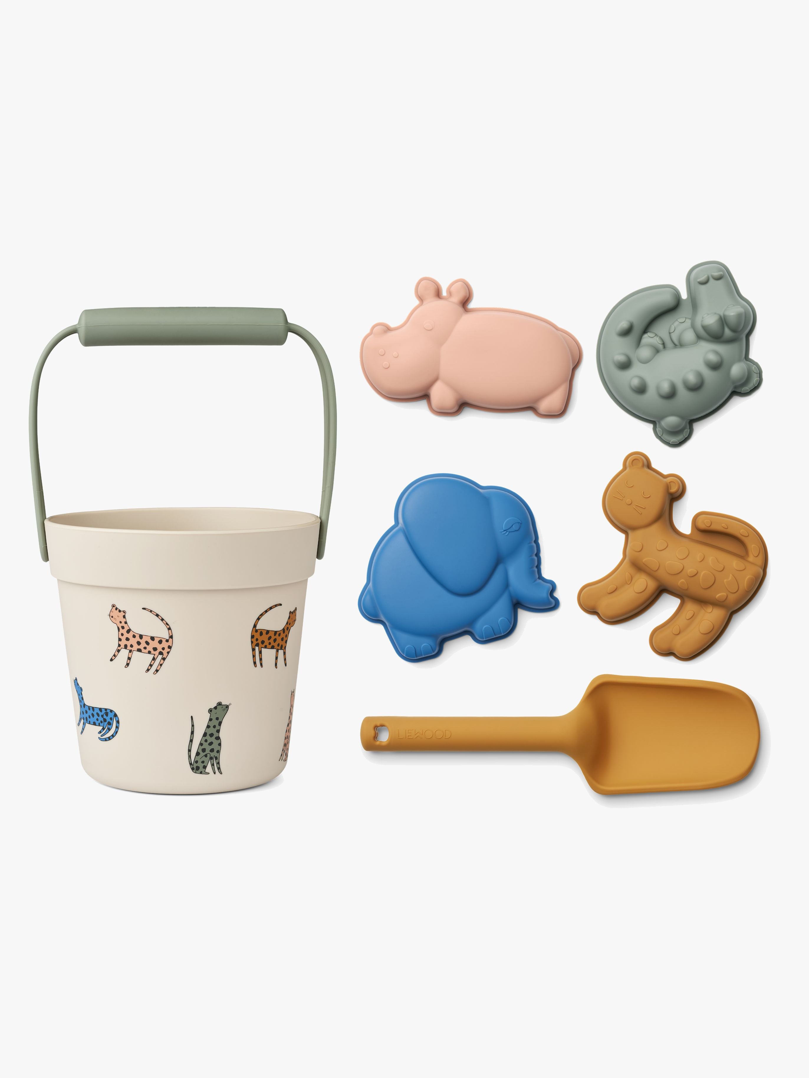 Strandsæt fra LIEWOOD med en masse sjovt tilbehør. Perfekt til en masse sjove vandlege. - Indeholder: 1 spand, 1 spade, 4 forme. - Perfekt til strandture og udforskning af naturen. - Til leg på stranden eller i sandkassen. - CE-mærket. - Anbefalet alder: Fra 1,5 år. - Silikone.