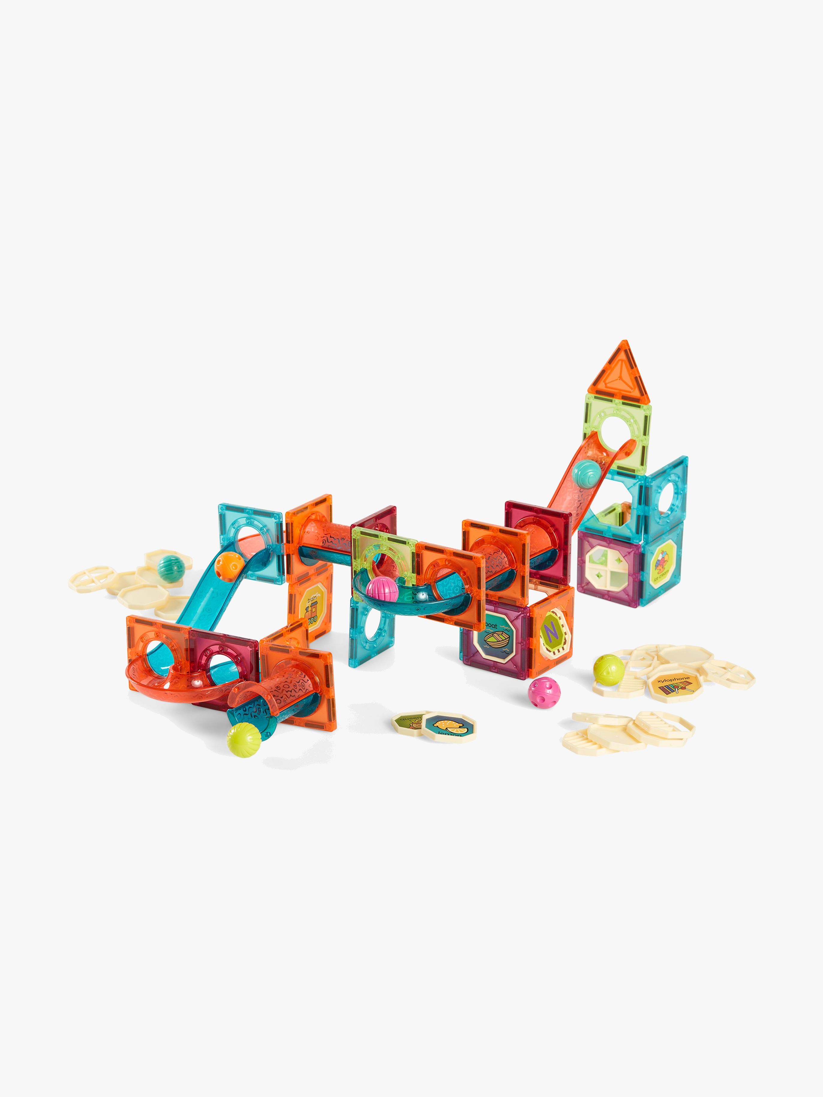 Magnetiske byggeklodser fra Fippla med et farverigt design. De har 78 dele i forskellige former og otte kugler. De magnetiske byggeklodser har sjove, dekorative klistermærker og en praktisk opbevaringskasse med et låg. Perfekte til at træne dit barns hånd-øje-koordination. CE-mærket. Anbefalet alder: Fra 3 år. ABS-plastik.