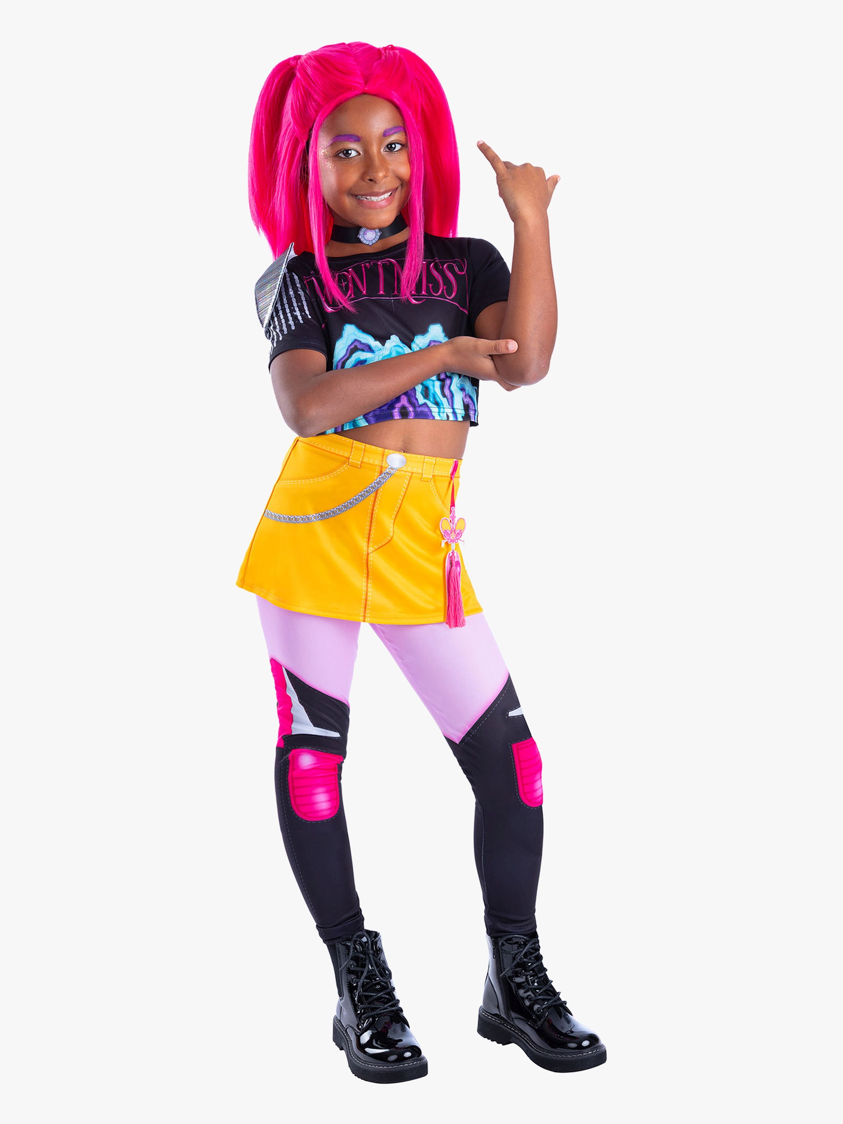 Kostume fra Rubies til at klæde sig ud som Mira fra den populære film. Det har en top med seje, printede detaljer og en gul nederdel med elastisk talje og syede leggings. Kostumet har traditionelle, Koreanske smykker for at fuldende outfittet. Perfekt til udklædning og rolleleg. - Tryl dig selv til din yndlingsfigur. - Elastisk talje. - Fine trykte detaljer. - Perfekt til alle K-Pop Demon Hunters-fans. - Til sjov og fantasifuld rolleleg. - CE-mærket. Indeholder: top, nederdel med leggings, smykker. - Anbefalet alder: Fra 6 år. - 100 % polyester.