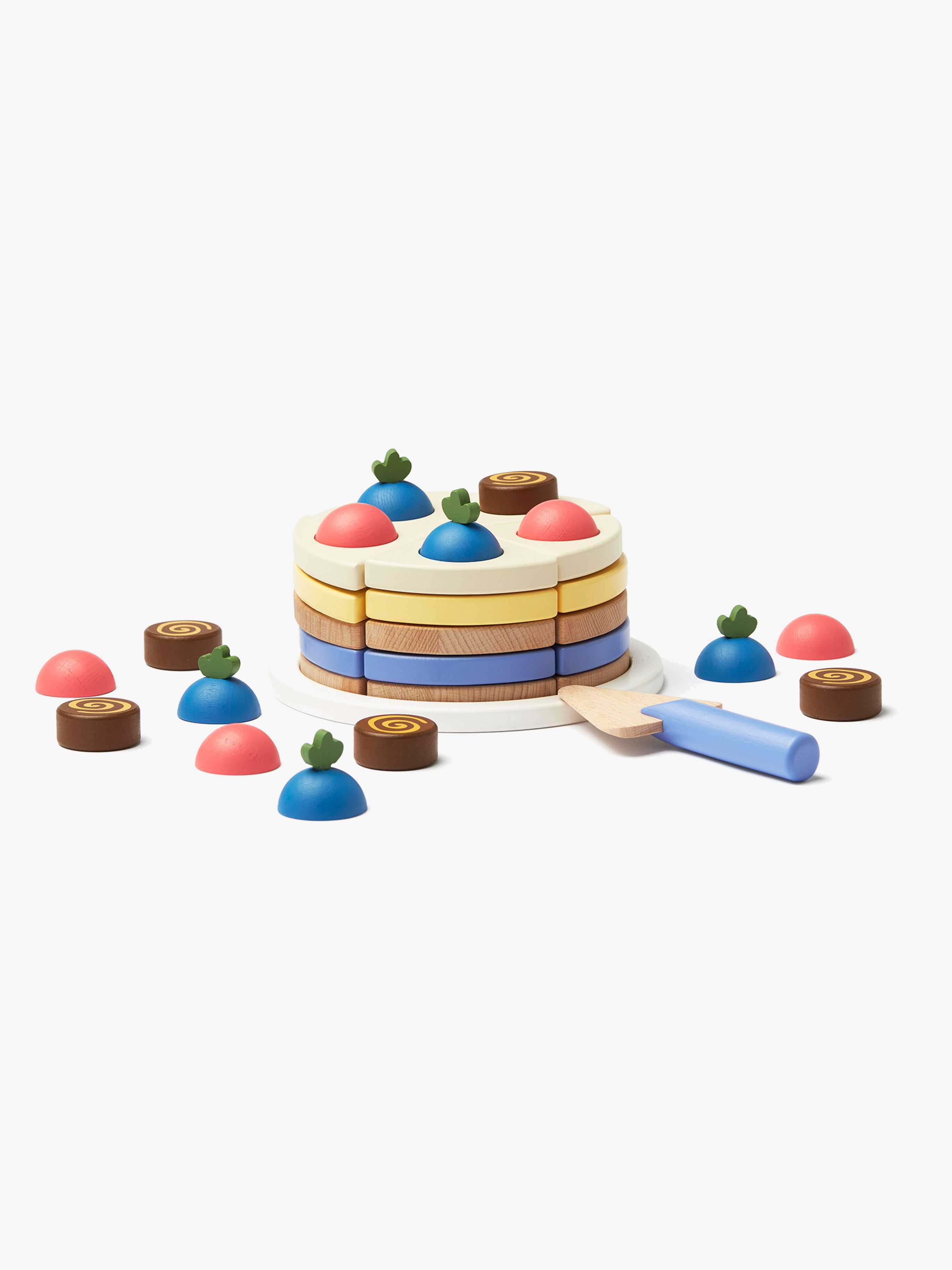 Festlig Kid's Hub lagkage fra Kids Concept i træ. Den har fem delikate lag med velcrostropper imellem. Perfekt til timevis af fantasifuld leg. - Indeholder: 1 kagefad, 25 kagelag, 1 kagespade, 1 kageæske. - CE-mærket. - Anbefalet alder: Fra 3 år. - MDF, bøgetræ, pap.