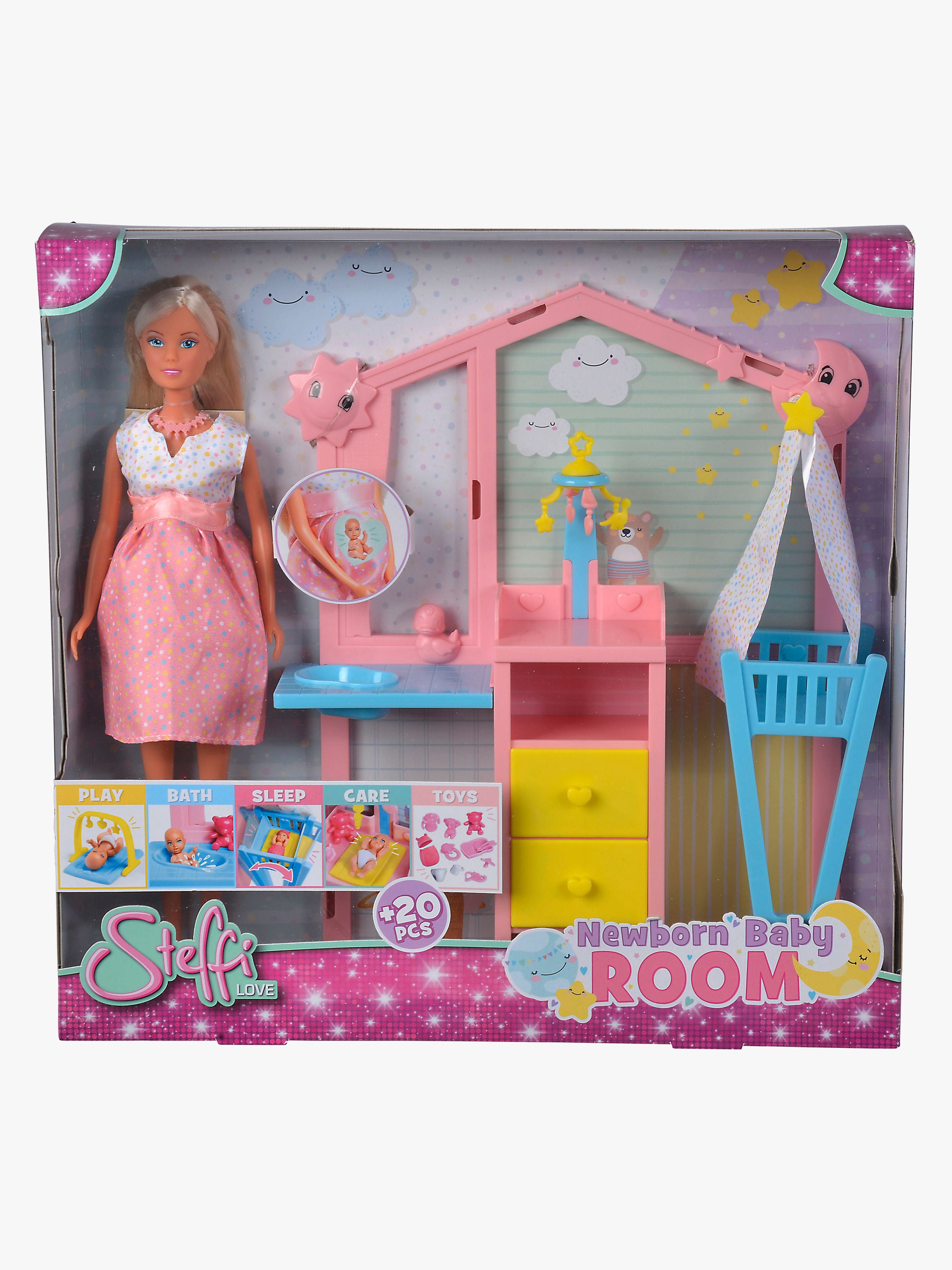 Legesæt fra Steffi LOVE med en Steffi-dukke og andet tilbehør til at hjælpe Steffi med at tage sig af sin nyfødte baby. Perfekt til timevis af fantasifuld leg. - Indeholder: 1 Steffi-dukke, 1 baby, 1 babyværelse, 1 aktivitetscenter, 15 babytilbehør. - Steffi-dukken er 29 cm høj. - Saml på alle produkterne i serien. - CE-mærket. - Anbefalet alder: Fra 3 år. - Plastik.