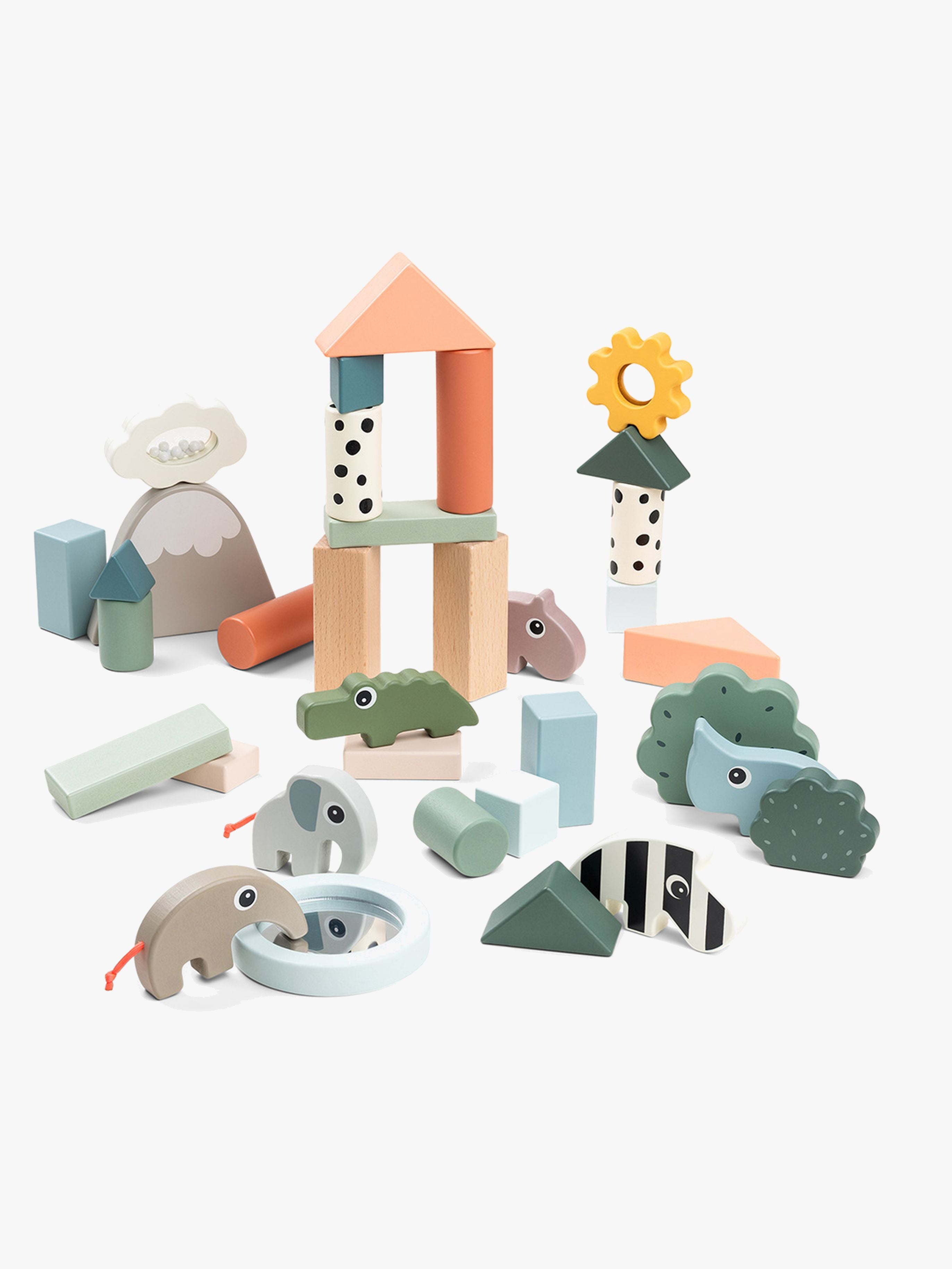 Byggeklodser fra Done By Deer. - 34 stk. - Perfekt til timevis af sjov! - Forskellige former og størrelser. - Spejl. - Rangle. - Praktisk opbevaringsboks. - Fri for skadelige emner. - Anbefalet alder: Fra 1,5 år.