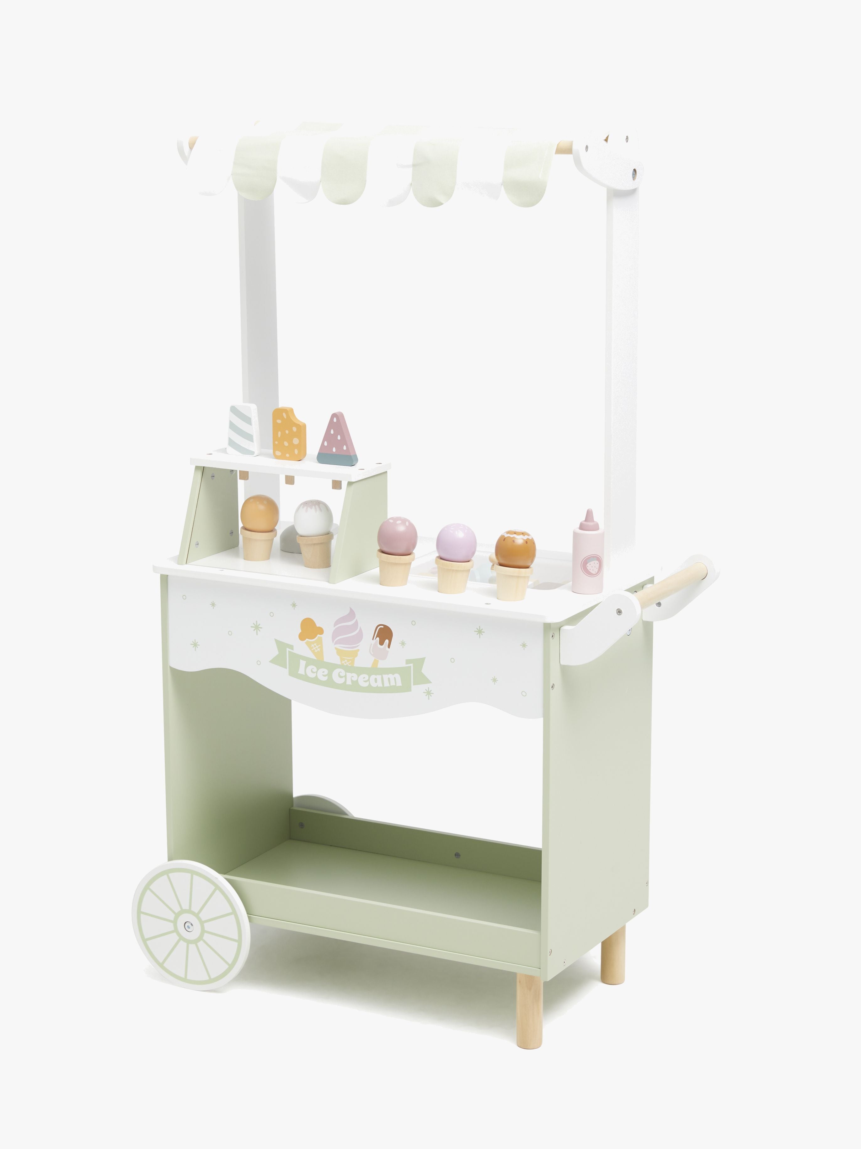 Isvogn fra PolarB med et inspirerende design i flotte farver. Den har to hjul og et praktisk håndtag for let transport. Isvognen har stor opbevaringsplads på undersiden og en tavle, hvorpå man kan skrive dagens forskellige smagsvarianter. Perfekt til timevis af fantasifuld leg. Du får også smukt lavede iskugler og kræmmerhus, ispinde og en magnetisk isske for en realistisk isvognsoplevelse. - Indeholder en isvogn med flere forskellige slags iskugler, vafler, pindeis, jordbærtopping og en isske. - Isske med magnet, så man kan få fat i iskuglerne. - Tavle på vognens ene side (kridt medfølgerikke). - CE-mærket. - Anbefalet alder: Fra 3 år. - Træ.