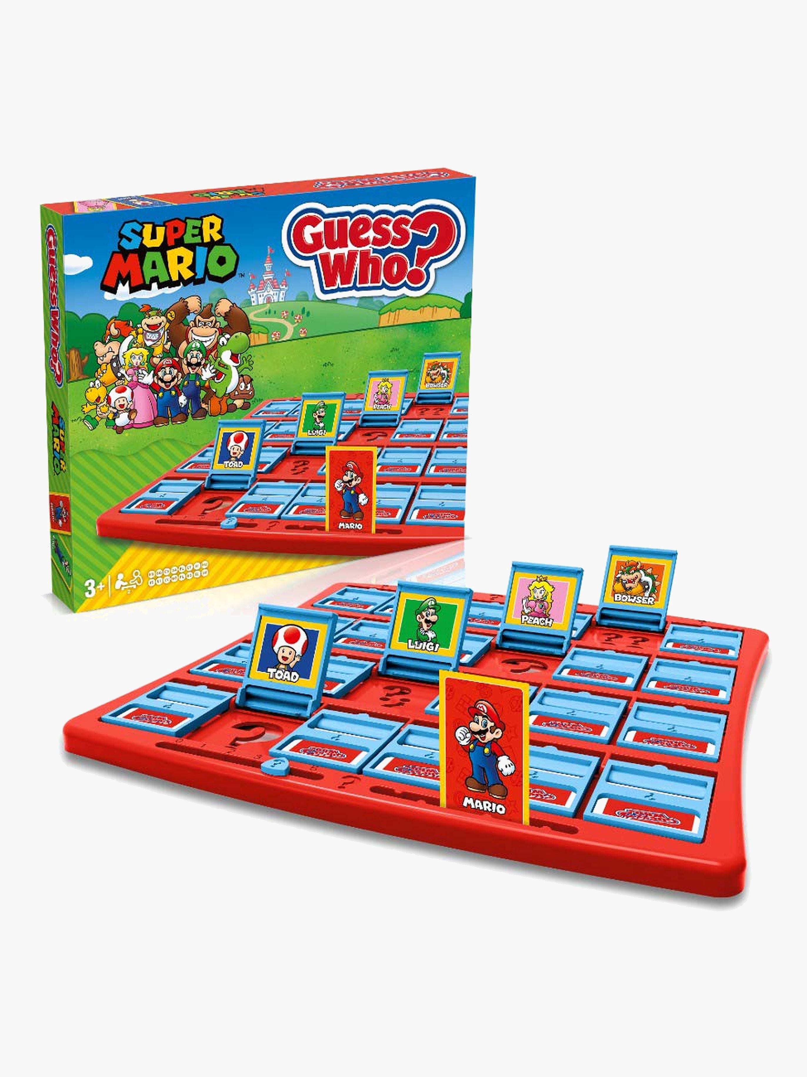 Hvem er hvem?-Spil fra Super Mario med indbydende twist med velkendte karakterer fra spillet. Spillerne skiftes til at stille kloge spørgsmål for at eliminere mistænkte og finde ud af, hvilken figur der er på din modstanders kort. Bærer de en krone? Har de en muslingeskal? Er de klædt i rødt? Hvis de er klædt i grønt, og de har overskæg, må de være Luigi! Med 24 mulige figurer og utallige forskellige detaljer at fokusere på, er Guess Who/Hvem er hvem? perfekt til at udvikle observation på en sjov og spændende måde. Det er bare at indsætte portrætkortene i spillepladen, og så er du klar til at spille. Held og lykke med spillet! CE-mærket. Anbefalet alder: Fra 3 år.