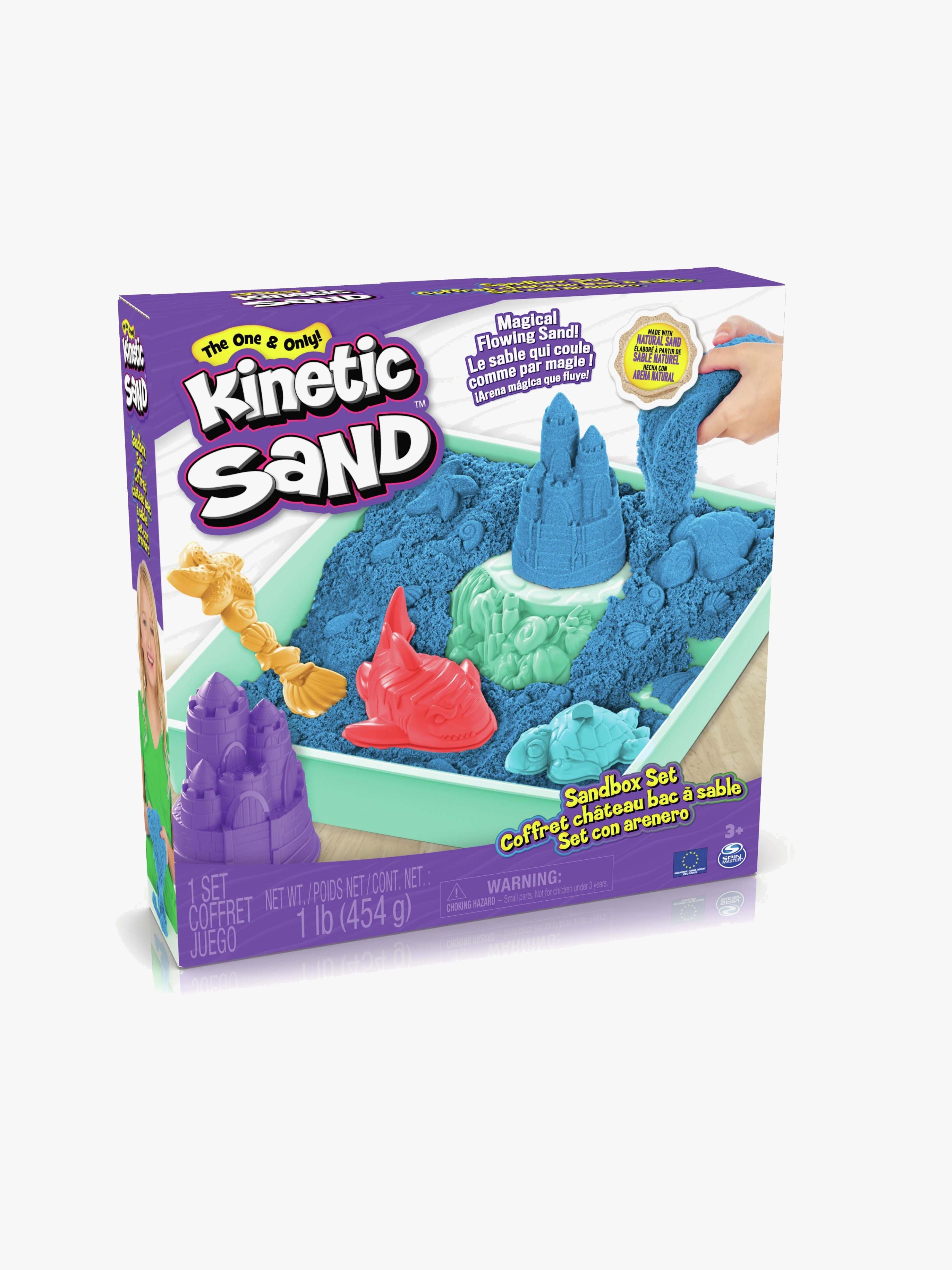 Legesæt fra Kinetic Sand med naturligt, formbart sand. Det har tre forskellige former og en pæn skovl til at lave sandslotte og andre sjove former med. Legesættet har en sandkasse med to niveauer og blåt sand. Sandet holdes sammen gennem sine kinetiske evner, hvilket gør, at du kan forme det, som du vil. Perfekt til timevis af kreativ leg. Du kan lege med dette sand i timevis, da det ikke tørrer ud! Indeholder 454 g kinetisk sand, 3 sandfigurer (skildpadde, haj og slot), 1 skovl, 1 sandkasse. CE-mærket. Anbefalet alder: Fra 3 år.