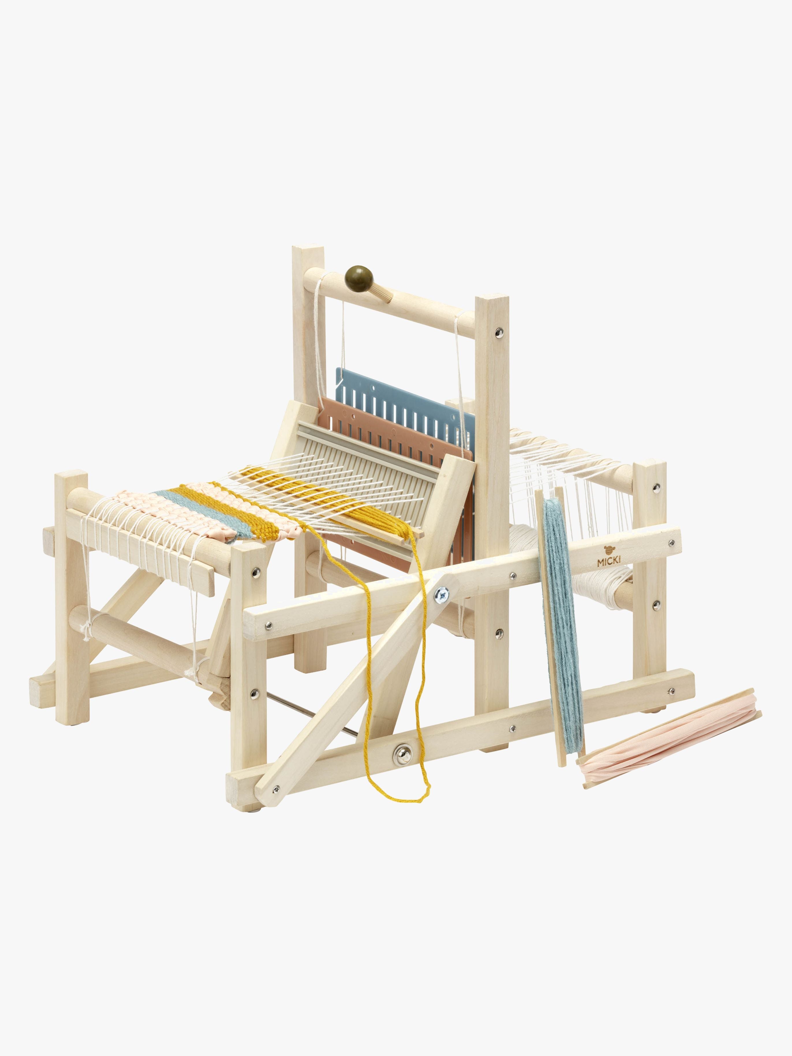 Klassisk vævestol fra Micki i træ med 3 forskellige slags garn. Lad din kreativitet få frit løb og væv duge, tæpper eller lige præcis det, du har lyst til. CE-mærket. Anbefalet alder: Fra 3 år. Træ, garn.