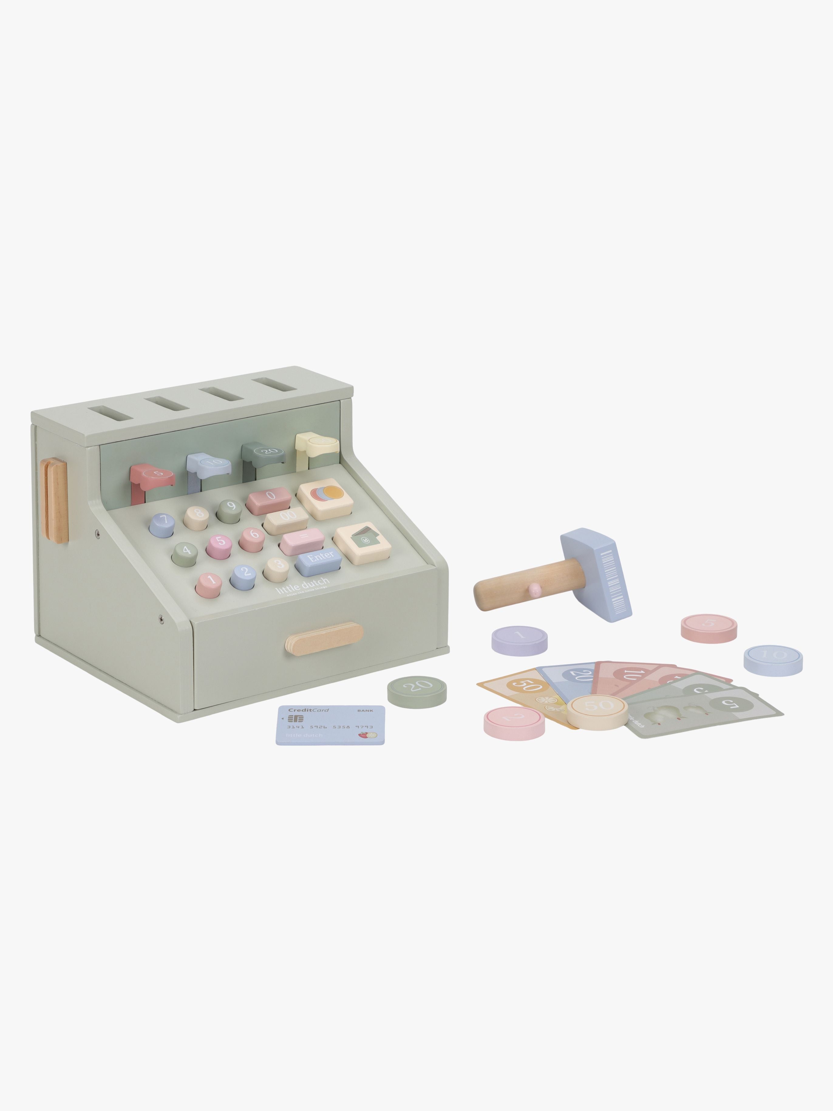 Kasseapparat fra Little Dutch med en masse sjovt tilbehør. Det har en udtrækkelig boks og en masse legepenge, så legen bliver som i det virkelige liv. Perfekt til timevis af fantasifuld leg. - Indeholder: 1 kasseapparat, 1 scanner, 1 kreditkort, 1 sæt med legetøjspenge. - Flere knapper til at trykke på og udforske. - Perfekt til at lege butik. - CE-mærket. - Anbefalet alder: Fra 3 år. - Træ.