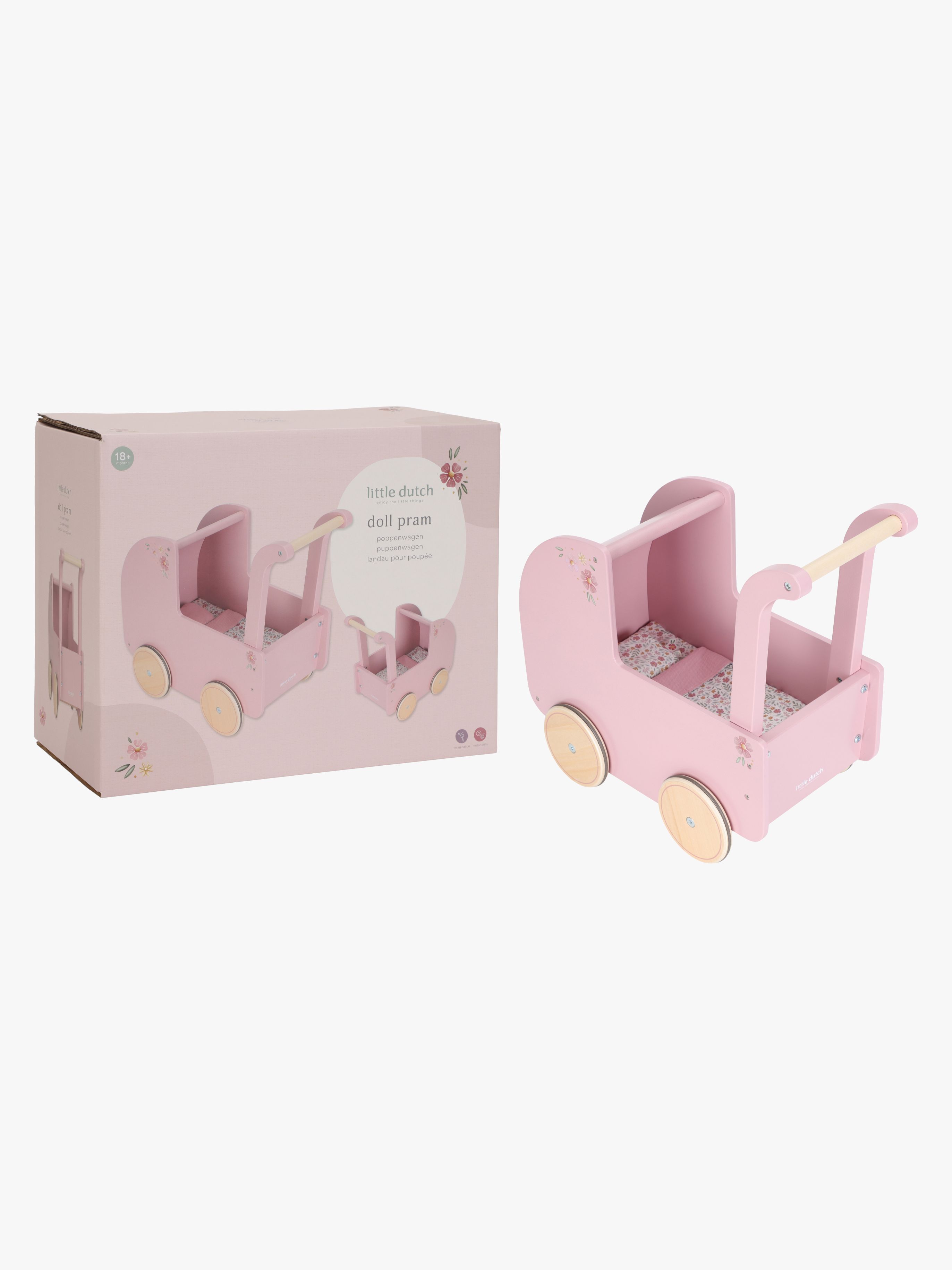 Dukkevogn fra Little Dutch med et sjovt design. Den har et medfølgende sengesæt med et fint blomstermotiv. Perfekt til timevis af fantasifuld leg. - Indeholder: 1 dukkevogn, 1 pude, 1 tæppe, 1 madras. - Perfekt til dukker, der er 30 cm høje. - Slidstærkt materiale. - Sødt design. - Til sjov og fantasifuld rolleleg. - CE-mærket. - Anbefalet alder: Fra 1,5 år. - Træ.