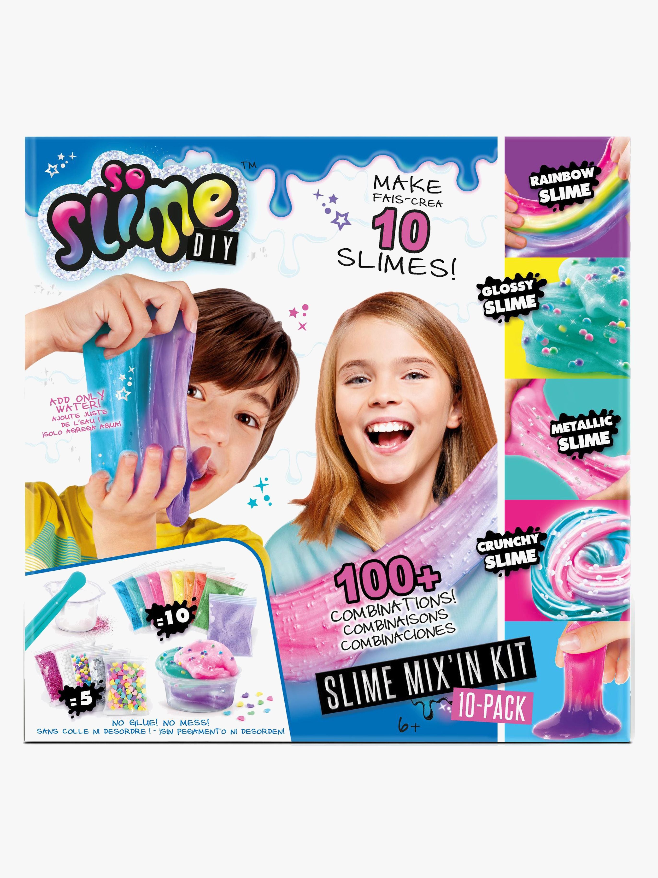 Sjovt slime fra So Slime DIY. Perfekt til kreative aktiviteter. - Indeholder: 10 poser med slime-blanding, 5 poser med dekoration, 1 blandeskål, 1 blandeværktøj, 5 beholdere. - 10-Pak. - Mix & match slime i over 100 forskellige kombinationer. - Man skal bare tilsætte vand. - Kun fantasien sætter grænserne. - CE-mærket. - Anbefalet alder: Fra 6 år. - Slime, plastik.
