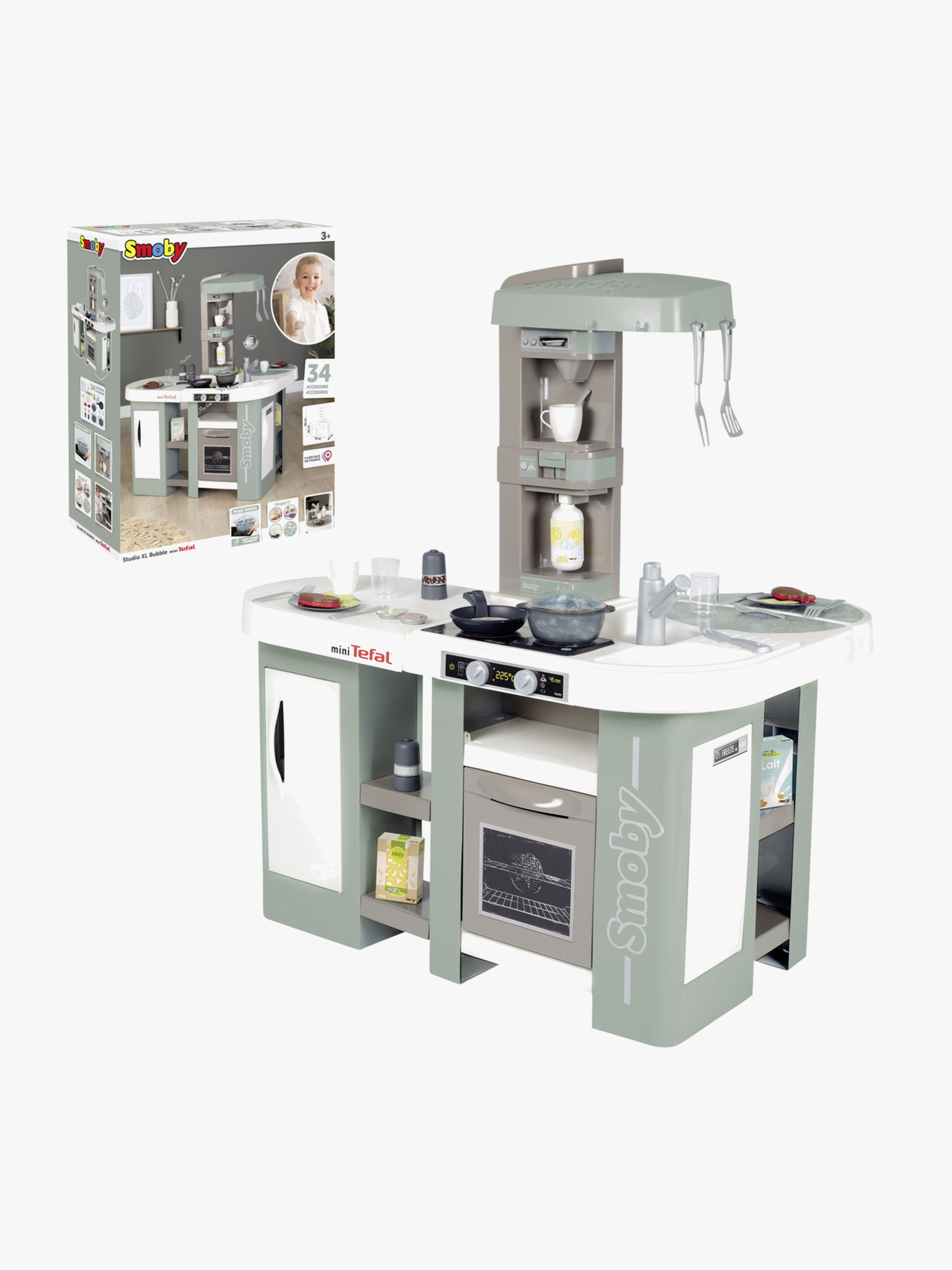 LuksuriÞst legekÞkken fra Smoby med mange hylder til opbevaring. Det har et komfur og en elektrisk funktion der fÃ¥r vandet til at boble og ”koge”. LegekÞkkenet har sjovt tilbehÞr. Her vil bÞrnene uden tvivl udvikle bÃ¥de fantasi og kreativitet gennem mange timers spÊndende leg. – Indeholder en stegepande, et spisesÊt og forskelligt legemad og tilbehÞr til kÞkkenet. – CE-mÊrket. – Anbefalet alder: Fra 3 Ã¥r. – Plastik, metal. – Batteri: 3 x AAA (medfÞlger ikke).