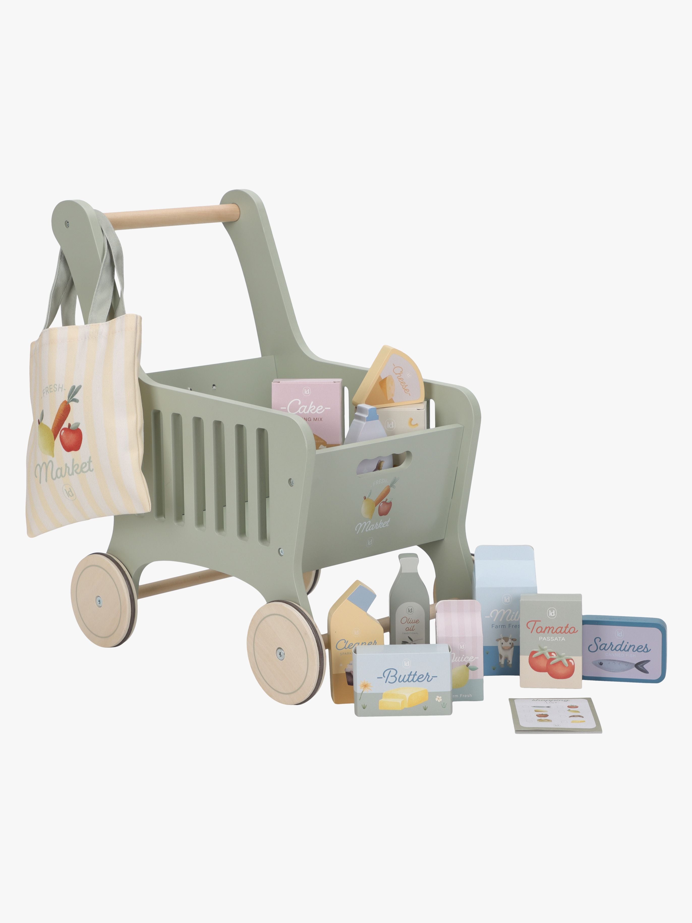 Sød indkøbsvogn fra Little Dutch med en masse spændende tilbehør. Perfekt til kreativ rolleleg. - Indeholder: 1 indkøbsvogn, 11 fødevarer, 1 taske, 1 indkøbsliste. - Læg dagligvarer i indkøbsvognen. - Lær gennem leg. - Udvikler kognitive og finmotoriske færdigheder. - CE-mærket. - Anbefalet alder: Fra 2 år. - Træ.