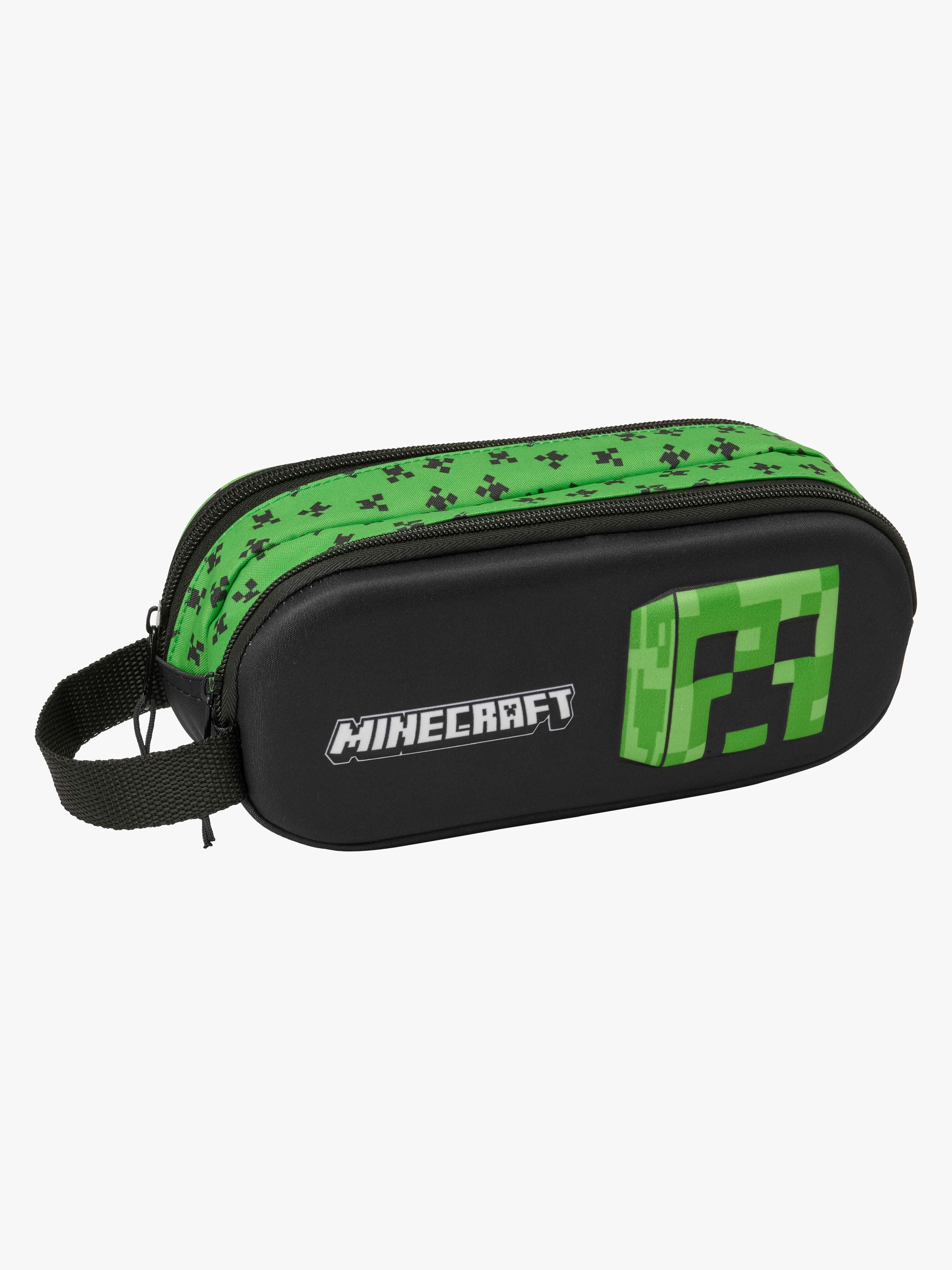 Dobbelt penalhus fra Minecraft med et praktisk design. Det har to rummelige rum til at holde styr på alt fra blyanter til viskelædere. Perfekt til skolen eller de kreative stunder. - To rum. - Rummeligt. - Lynlås. - Praktisk håndtag. - Fungerer lige så godt hjemme som til skolen! - 300D polyester.