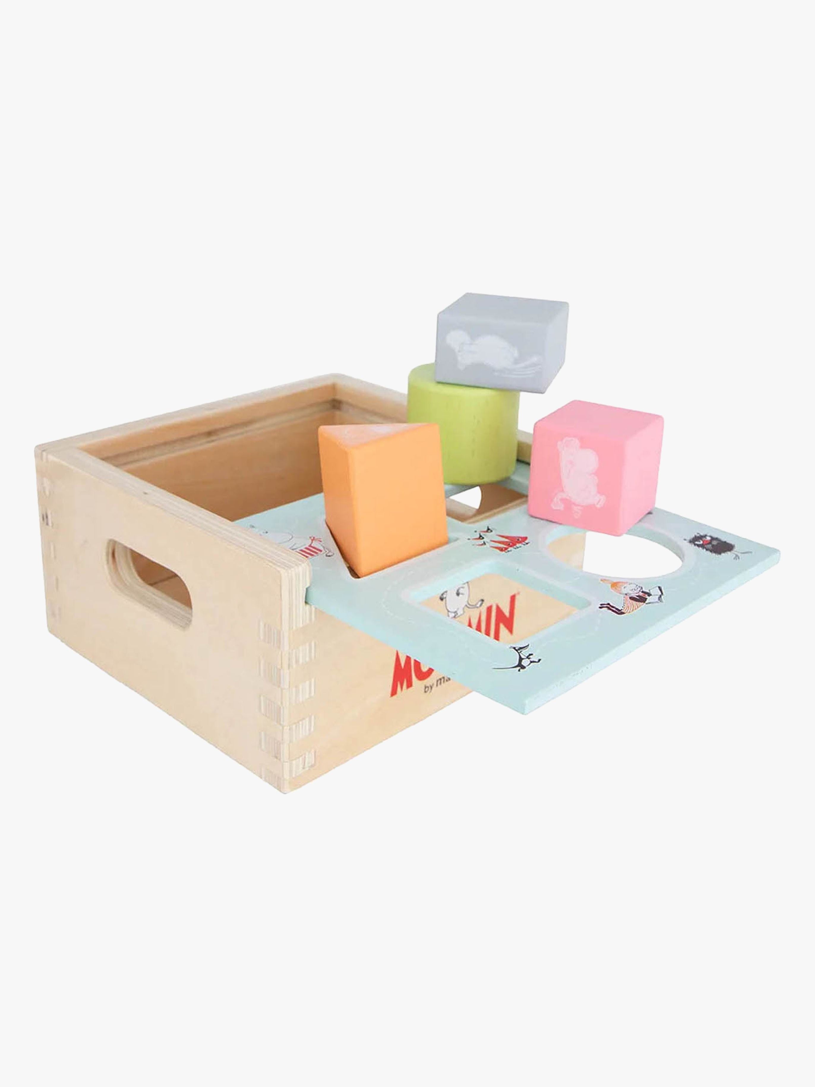 Tręklodser fra Mumitroldene med fine motiver fra Mumitroldene. De har fire forskelligformede klodser med forskellige farver og fire forskelligformede huller, så barnet kan få klodserne ned i de tilsvarende huller. Dette legetųj fremmer udviklingen af finmotorik, koordination og problemlųsning. CE-męrket. Anbefalet alder: Fra 12 måneder. 100 % trę.
