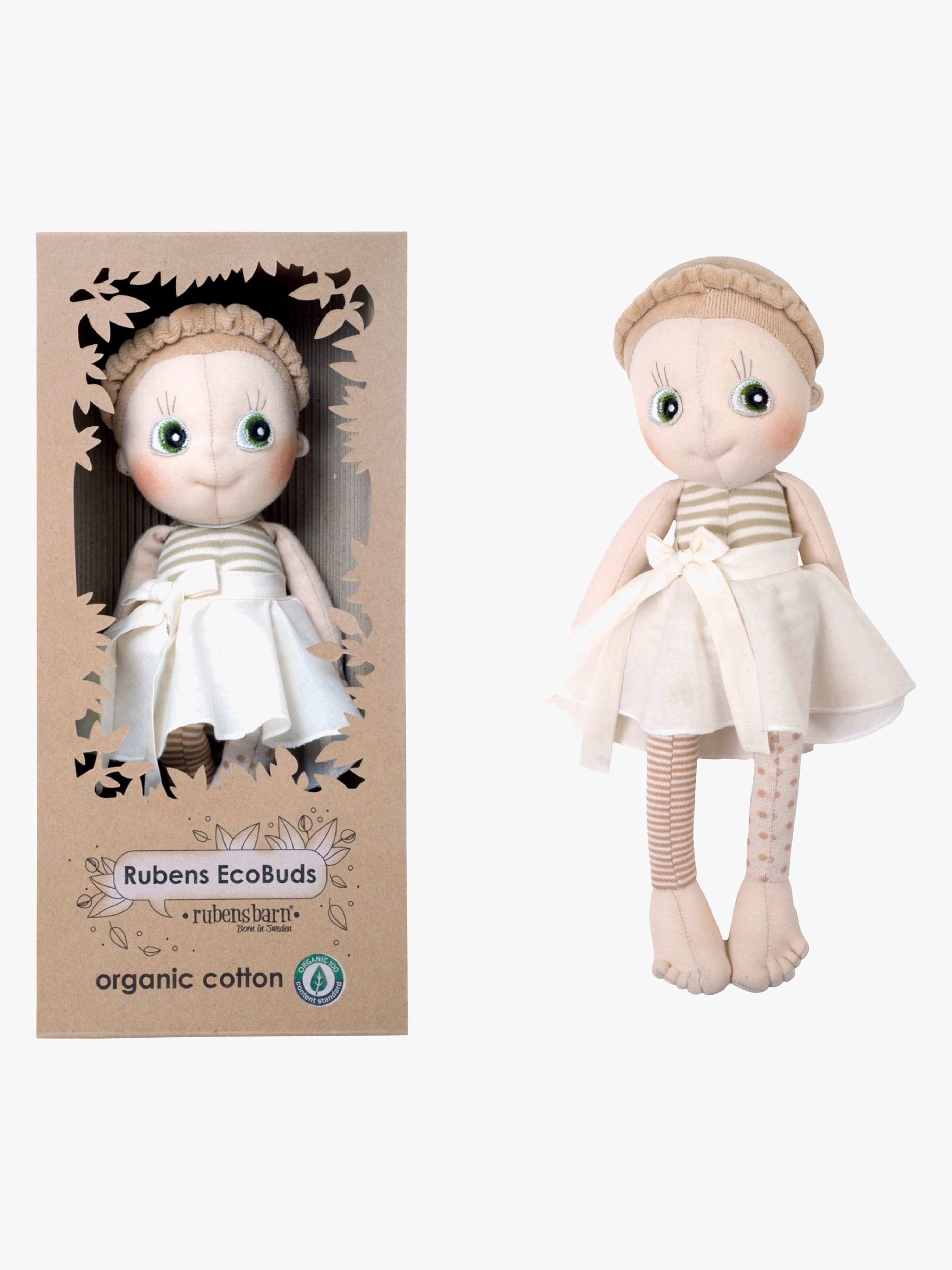 Sød dukke fra Rubens Barns EcoBuds, der er en blød, håndlavet dukke, der er iklædt sødt tøj. Dukken passer godt til børn i alle aldre til drenge såvel som piger. Dukken indeholder ikke nogen farlige komponenter. Anbefalet alder: Fra 0 år
